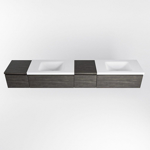 MONDIAZ BUKLA 240cm ensemble de meuble avec module 40 à droite couleur Marron Foncé avec 4 tiroirs. Lavabo CLOUD double 0 trou de robinet couleur Talc.