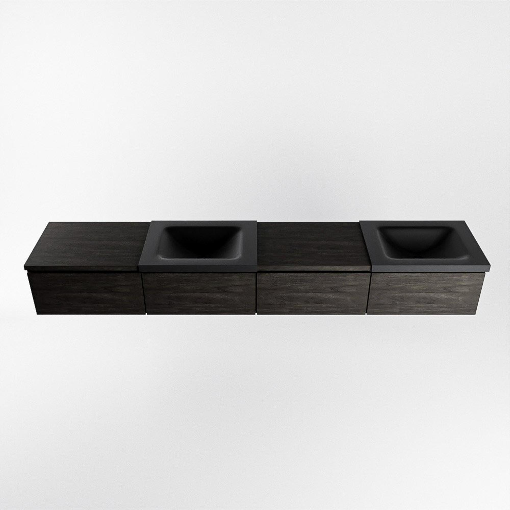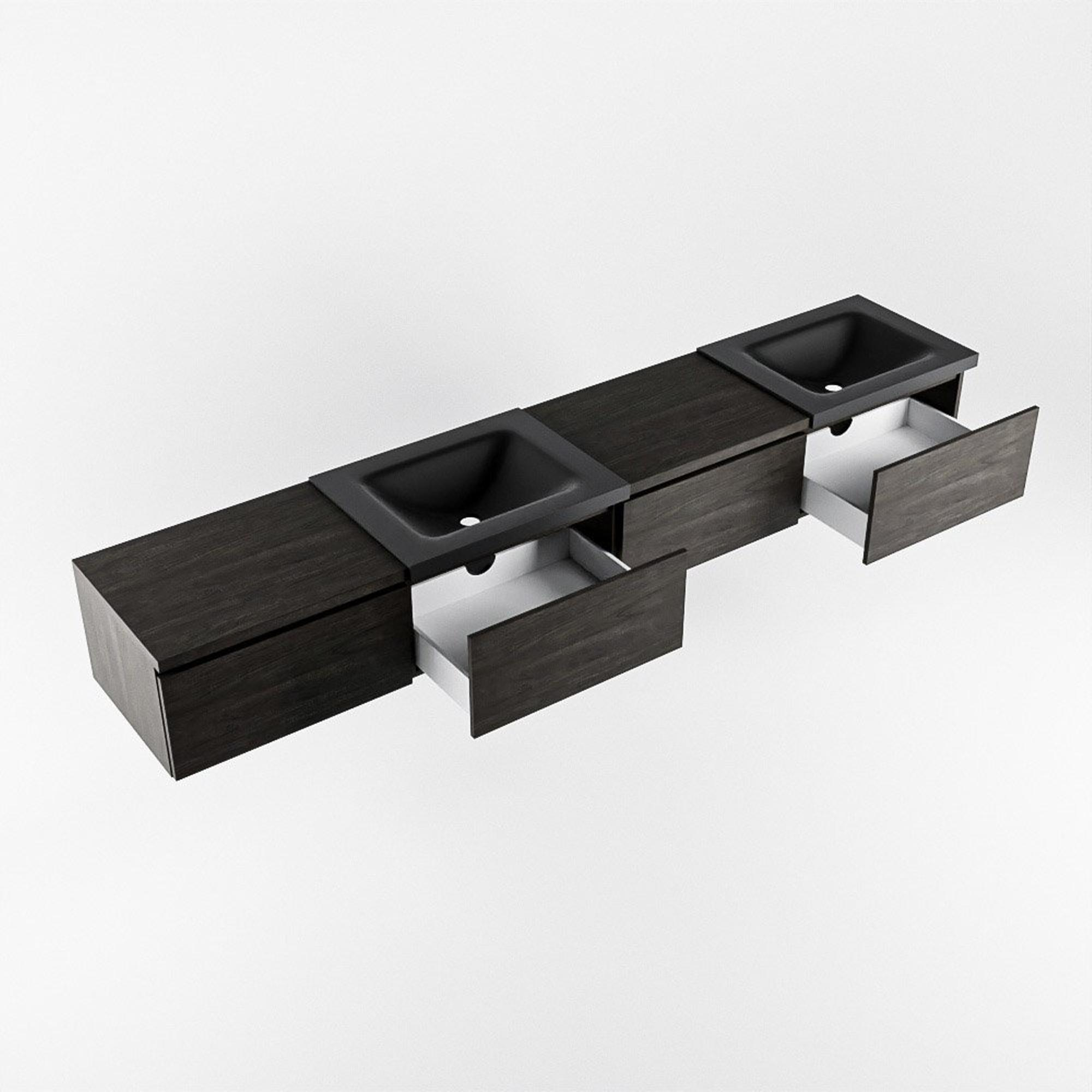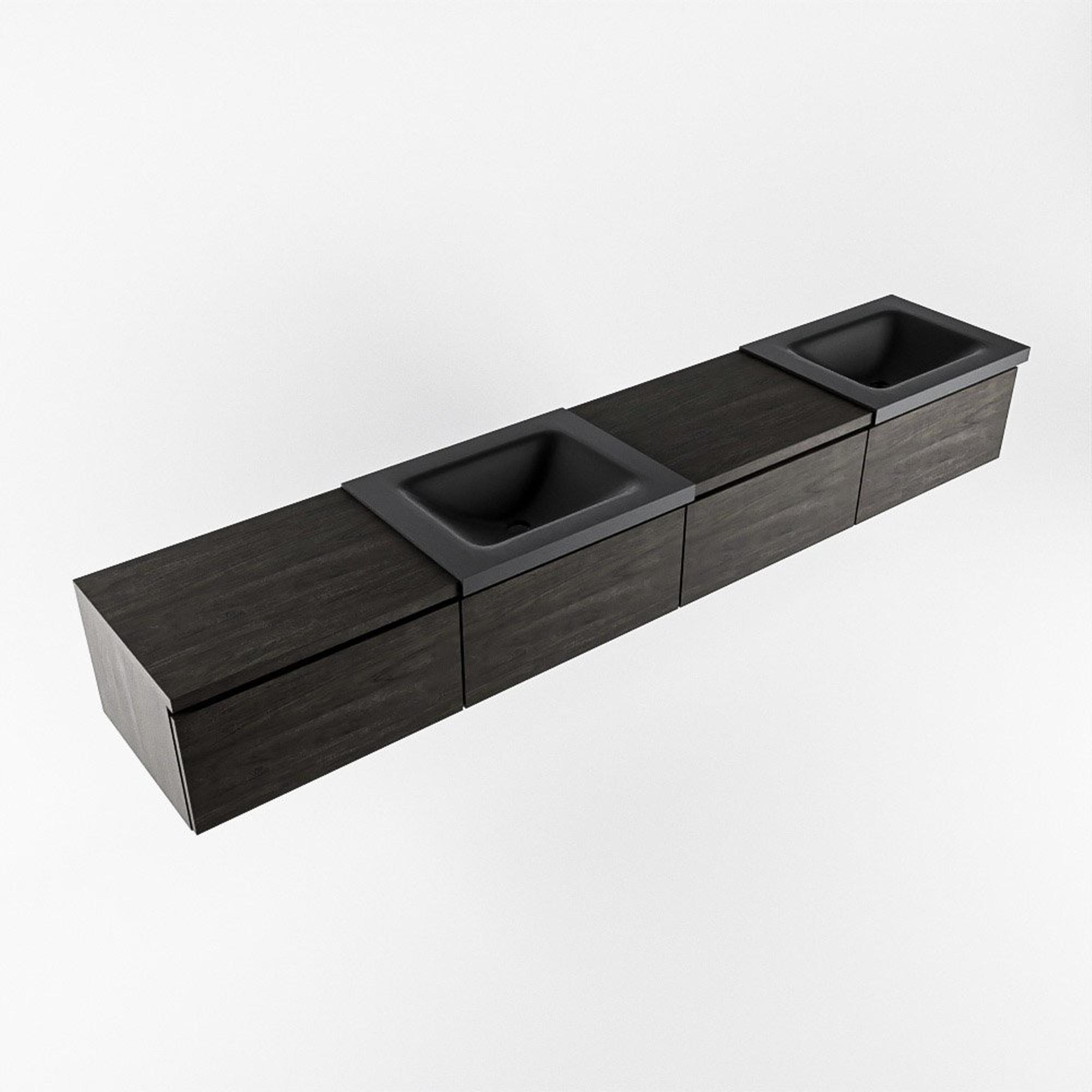 MONDIAZ BUKLA Meuble de salle de bains 240cm avec module 60 gauche couleur Dark Brown avec 4 tiroirs. Lavabo CLOUD double 0 trous de robinet couleur Urban.