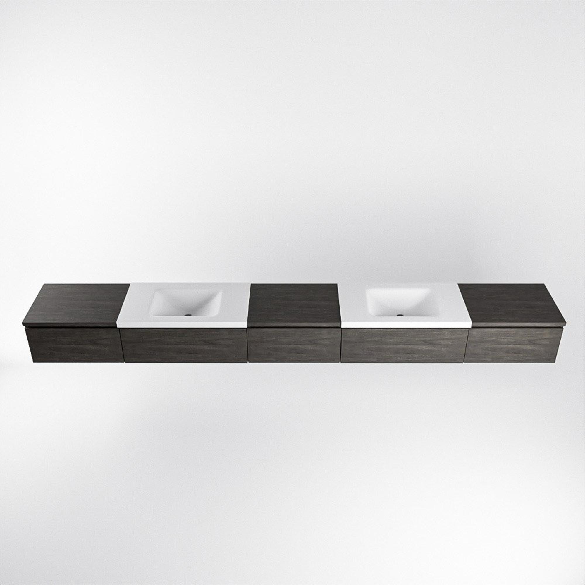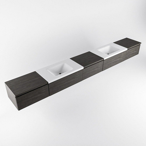 MONDIAZ BUKLA 340cm meuble de salle de bains avec module 60 couleur Dark Brown avec 5 tiroirs. Lavabo CLOUD double 2 trous de robinet couleur Talc.