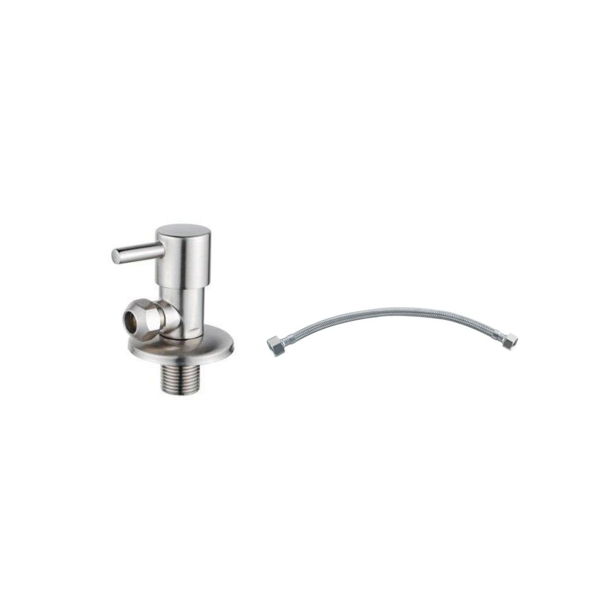 Fortifura Calvi Robinet d'arrêt d'angle avec tuyau flexible - tuyau de 30cm - 1/2"x3/8" - acier inoxydable brossé