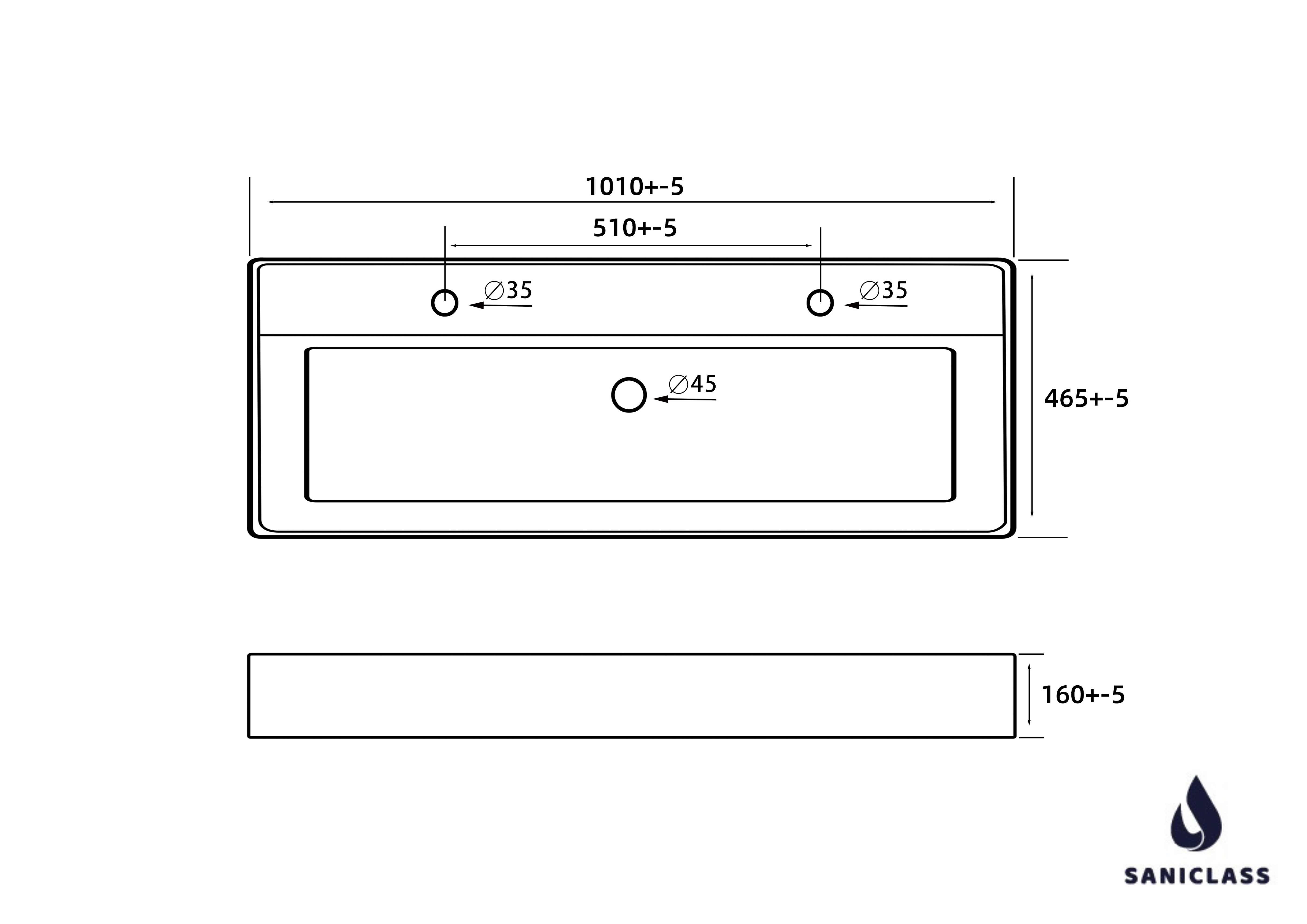 Saniclass Levina Meuble lavabo - 100.5x47x12cm - trop-plein - 1 lavabo - 2 trous de robinet - céramique - blanc brillant