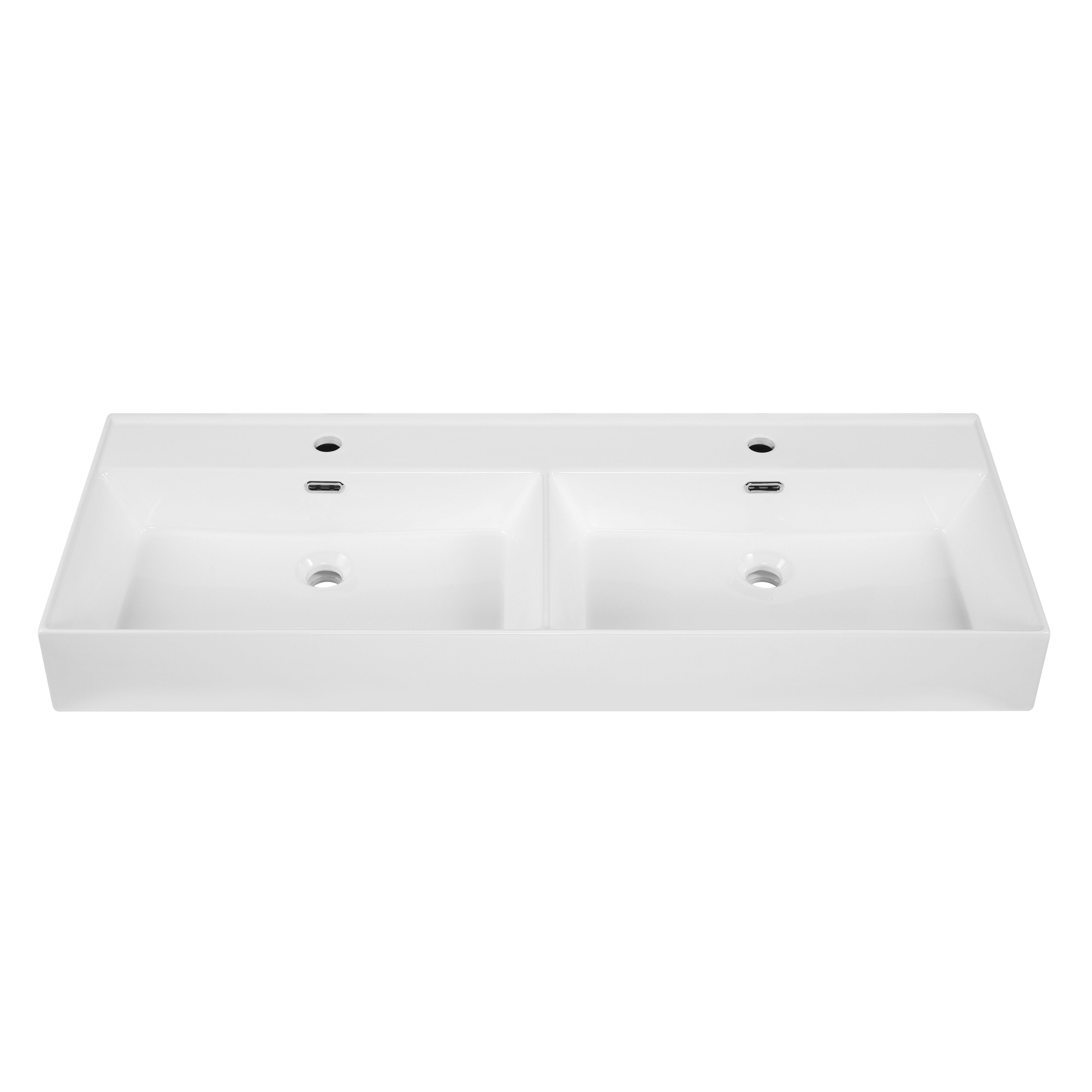 Saniclass Levina Meuble lavabo - 120,5x47x12cm - trop-plein - 2 lavabos - 2 trous de robinet - céramique - blanc brillant