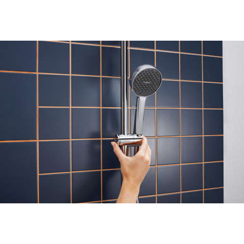 Avec le bouton Select pratique, vous passez facilement entre les deux types de jets : la douce pluie Rain et la puissante ImpactRain. La barre de glissement est réglable en hauteur de manière continue et équipée d'un mécanisme de verrouillage, vous permettant de positionner la douchette à main toujours à l'endroit parfait. Le raccord pivotant empêche que le tuyau de douche ne s'emmêle, rendant l'utilisation encore plus agréable. De plus, le curseur est pivotant, ce qui vous permet de l'ajuster facilement selon vos préférences personnelles. Ces fonctions intelligentes rendent l'ensemble particulièrement convivial et flexible.