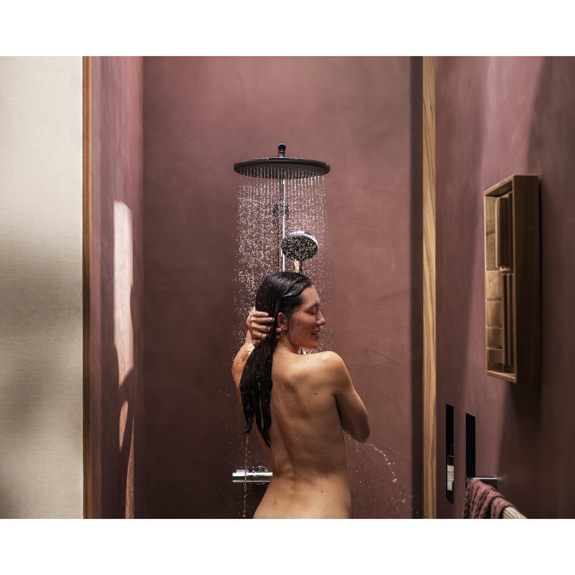 Le design de ce système de douche est une véritable œuvre d'art, inspirée par l'harmonie entre l'eau, l'homme et l'espace. Avec sa pomme de douche ronde de 30 cm de diamètre et sa finition chromée, il dégage une élégance intemporelle qui s'intègre parfaitement dans toute salle de bains moderne. Les détails subtils et le caractère minimaliste font que le système est non seulement fonctionnel, mais aussi un véritable élément de décoration. Vous donnez ainsi à votre salle de bains une mise à jour qui impressionnera non seulement aujourd'hui, mais aussi à l'avenir.