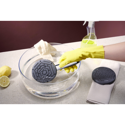 Le design de cette douchette est un équilibre parfait entre élégance et intemporalité. Avec sa finition chrome brillante et sa forme ronde, elle ajoute une touche moderne et chaleureuse à votre salle de bains. Le design iconique, développé en collaboration avec des studios de design renommés, fait que cette douchette s'adapte facilement à différents styles de salle de bains. Vous créez ainsi une ambiance agréable dans laquelle vous vous sentez bien chaque jour. De plus, le matériau de haute qualité reflète un savoir-faire et une durabilité, contribuant à l'aspect luxueux de votre salle de bains.