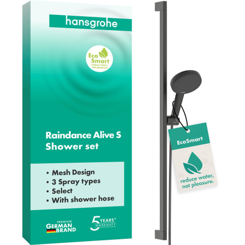 Hansgrohe Raindance alive 125 3 jet EcoSmart ensemble de douche 90cm - Chrome noir brossé (anthracite)
