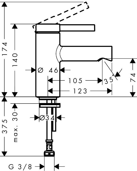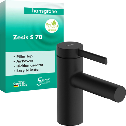 Hansgrohe Zesis S toiletkraan 70 met rechte greep voor koud water of vooraf ingestelde temperatuur zonder afvoer mat zwart