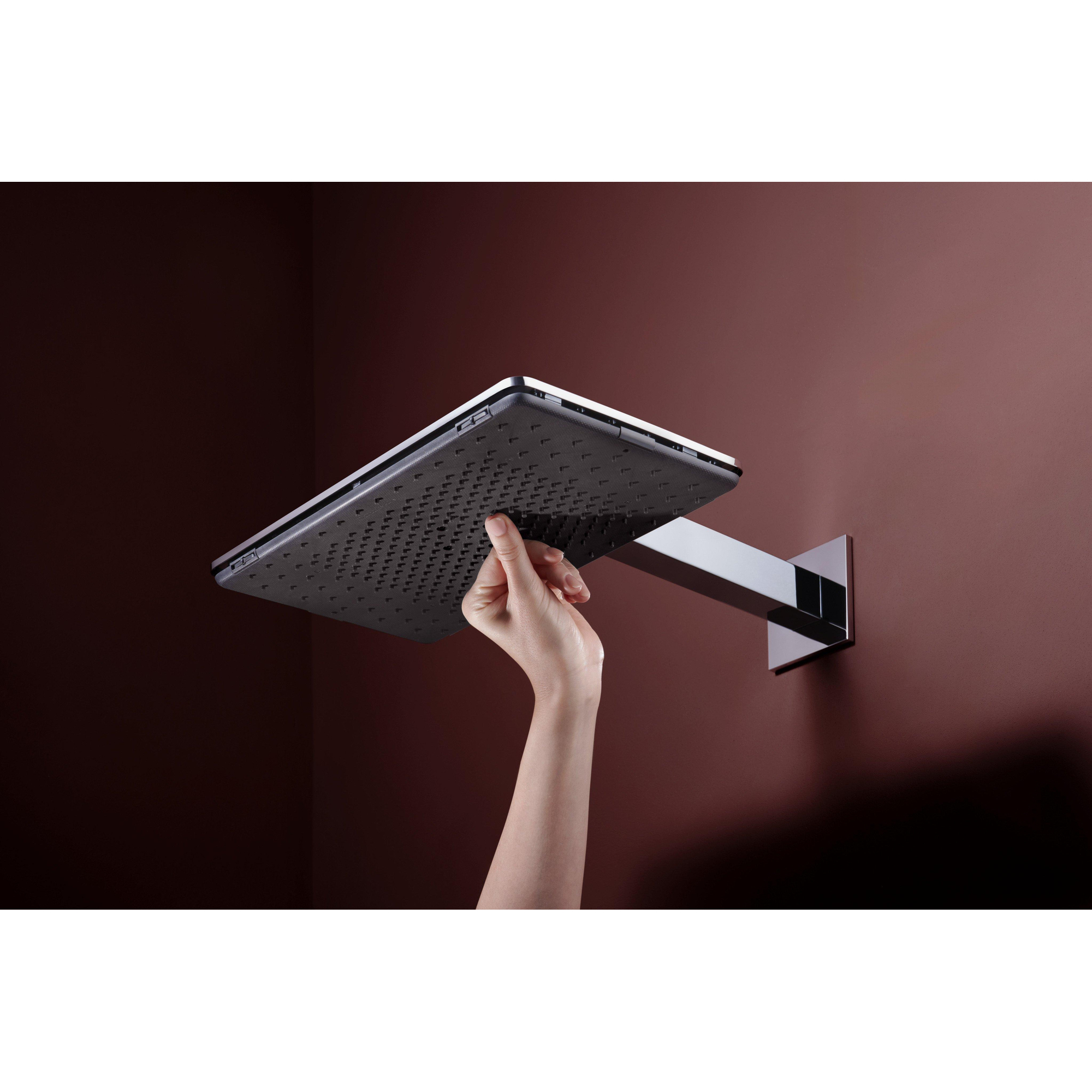 Cette pomme de douche est un véritable élément décoratif grâce à son design rectangulaire épuré et sa finition chromée brillante. Son aspect moderne s'intègre aisément dans divers styles de salle de bains, du minimaliste au contemporain. Avec ses dimensions généreuses de 210 par 340 millimètres, la tête de douche attire immédiatement l'œil et confère à votre salle de bains une allure luxueuse. L'accent noir subtil ajoute un détail ludique sans nuire à l'élégance intemporelle. Vous créez ainsi une salle de bains non seulement fonctionnelle, mais aussi invitante à la détente et au plaisir.