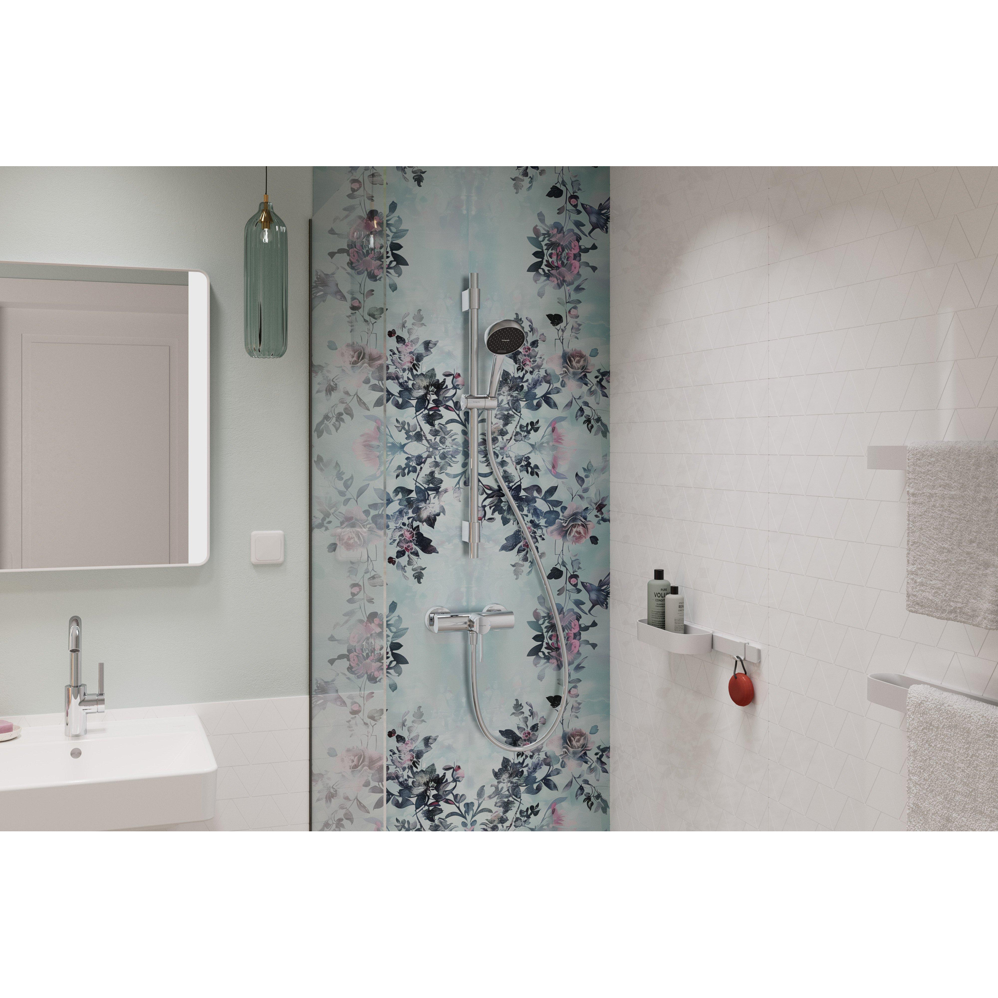 L'ensemble est équipé de deux types de jets – Rain et ImpactRain – que vous pouvez facilement changer avec le bouton Select pratique. La barre coulissante est réglable en hauteur de manière continue et le support coulissant est pivotant, vous permettant de positionner la tête de douche exactement comme vous le souhaitez. Le raccord pivotant empêche le tuyau de douche de s'emmêler, rendant l'utilisation encore plus confortable. Grâce au mécanisme de verrouillage, tout reste solidement en place, tandis que le support mural variable permet un montage flexible.