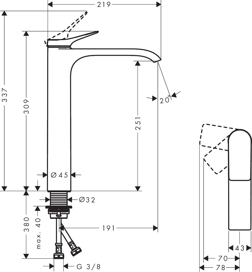 Hansgrohe Vivenis mitigeur lavabo 191mm m/coolstart br.black chr.