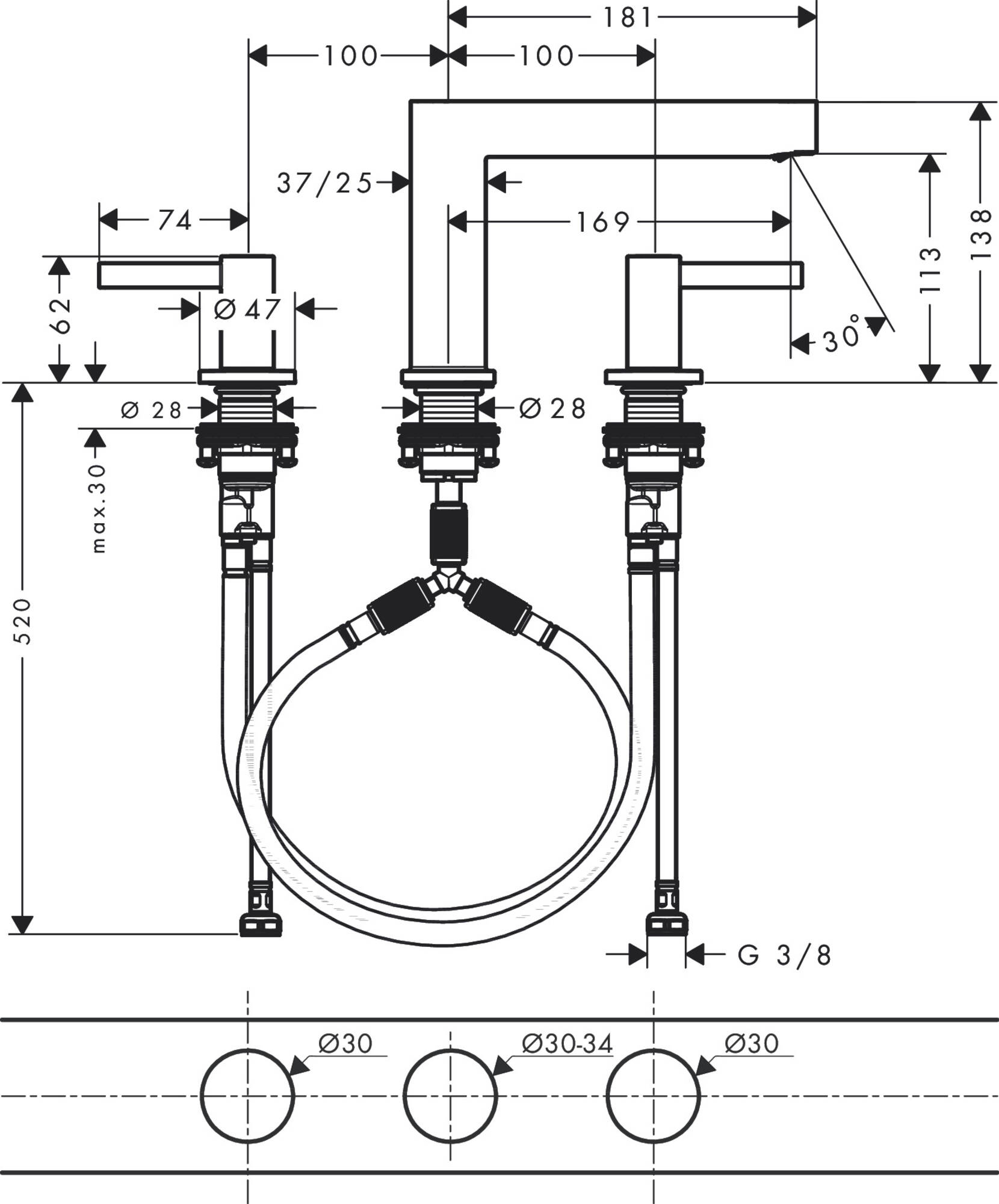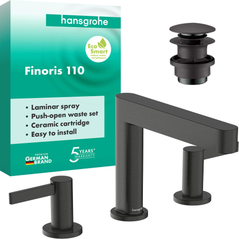 Hansgrohe Finoris Mitigeur lavabo 3 trous avec bonde pop-up br.black chr.
