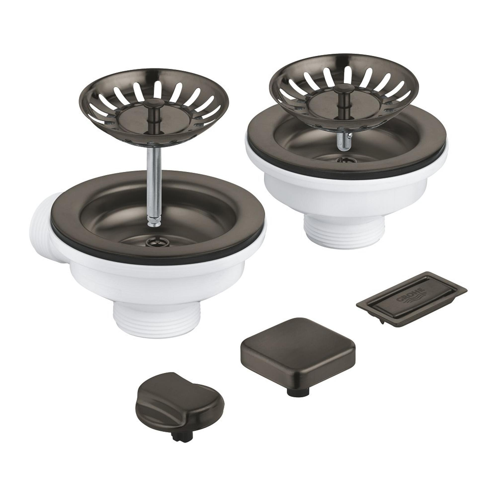GROHE ensemble bonde à panier pop-up - pour 2 éviers - combinaison de trop-plein - hard graphite brossé (gris foncé mat)