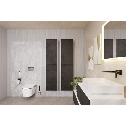Avec cette plaque de commande élégante, vous donnez immédiatement à vos toilettes une apparence plus luxueuse et moderne. Les lignes épurées et la couleur chrome noir brossé s’harmonisent parfaitement avec les salles de bains contemporaines, du style minimaliste et industriel au style hôtel chic. Grâce à ses dimensions compactes, le panneau s’intègre parfaitement au-dessus d’un WC suspendu, sans dominer l’espace. Cela en fait un choix astucieux si vous souhaitez rehausser votre espace WC avec des détails de haute qualité, par exemple dans un projet de construction neuve ou lors d’une rénovation des toilettes ou de la salle de bains. De plus, le confort d’utilisation est élevé : deux boutons bien distincts pour la petite et la grande chasse vous aident à utiliser l’eau de manière plus responsable, sans sacrifier le confort.