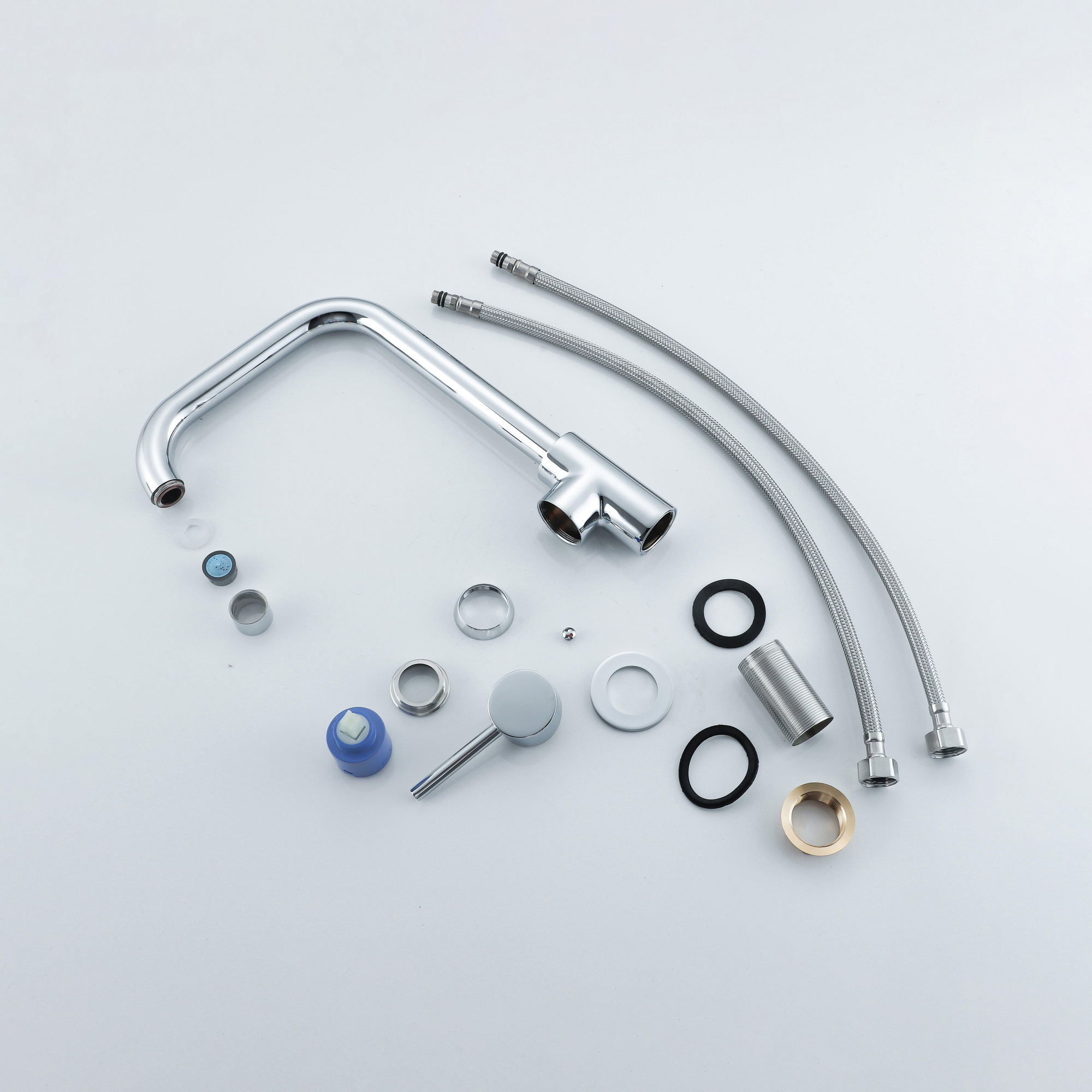 La finition chromée donne au robinet un aspect brillant et moderne qui attire immédiatement l'attention. Ce design intemporel s'adapte parfaitement à différents styles d'intérieur et assure une apparence fraîche et soignée dans votre cuisine. Grâce au design minimaliste et épuré, vous ajoutez une touche d'élégance sans dominer. Ainsi, vous profitez non seulement de la fonctionnalité, mais aussi d'un élément décoratif élégant qui complète votre cuisine.