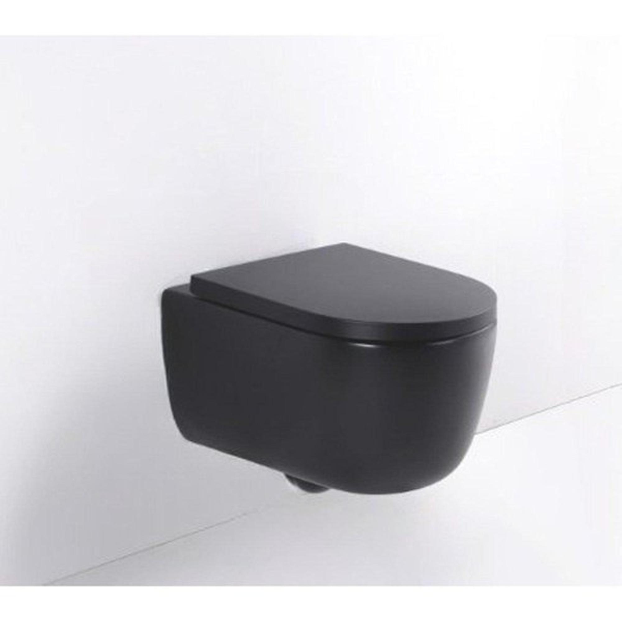 QeramiQ Dely Swirl Pack WC - 36,3x51,7cm - réservoir encastré Geberit UP720 Duofix Sigma - assise 35mm - plaque de déclenchement mat anthracite - boutons ronds - mat noir SW1413161