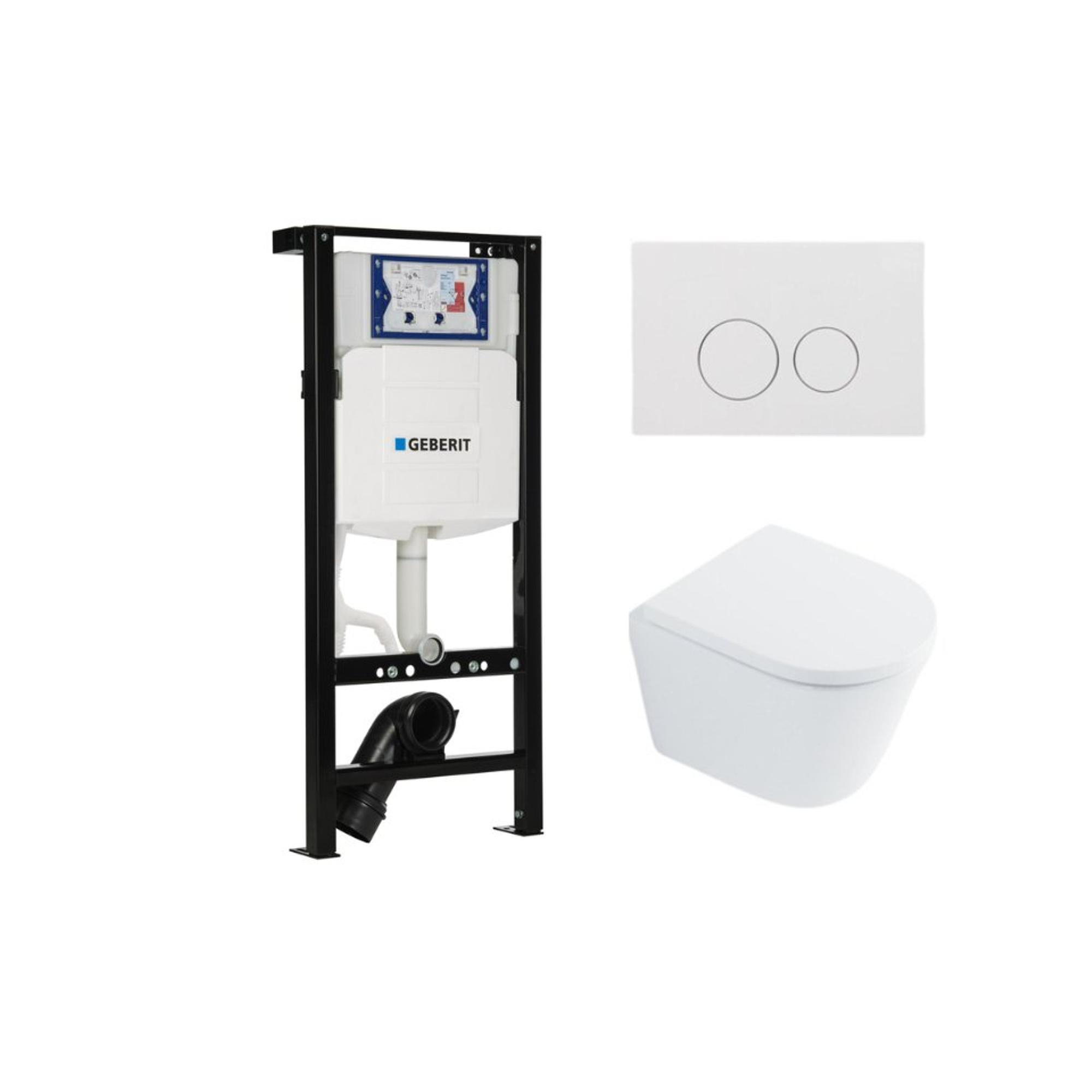 QeramiQ Dely Ensemble WC - 36.3x51.7cm - cuvette profonde - rimless - Geberit UP320 réservoir encastré - abattant WC à fermeture douce - plaque de commande blanche brillante - boutons ronds - blanc brillant