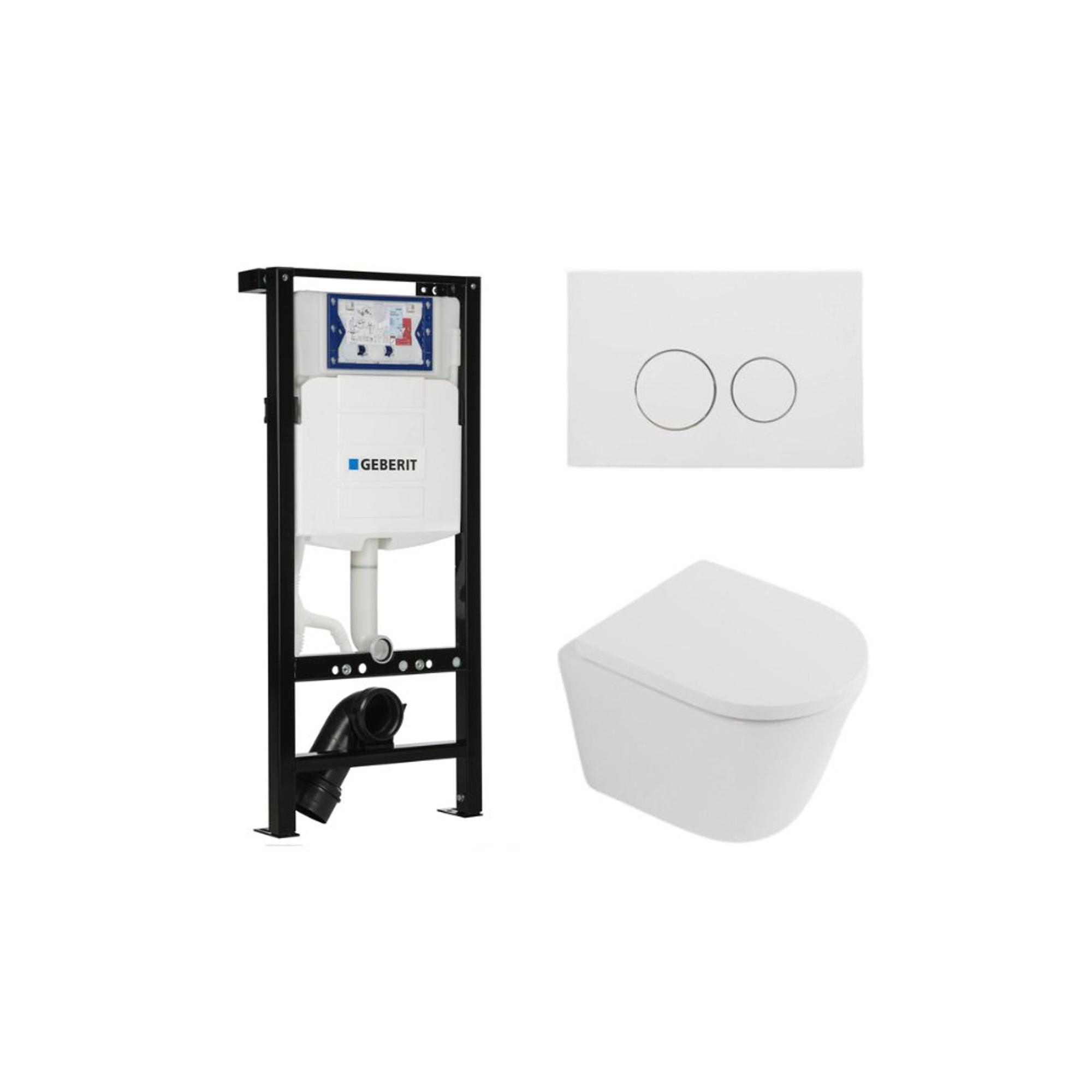 QeramiQ Dely Toiletset - 36.3x51.7cm - cuvette profonde - rimless - réservoir encastré Geberit UP320 - abattant WC softclose - plaque de commande blanche mate - boutons ronds - blanc mat