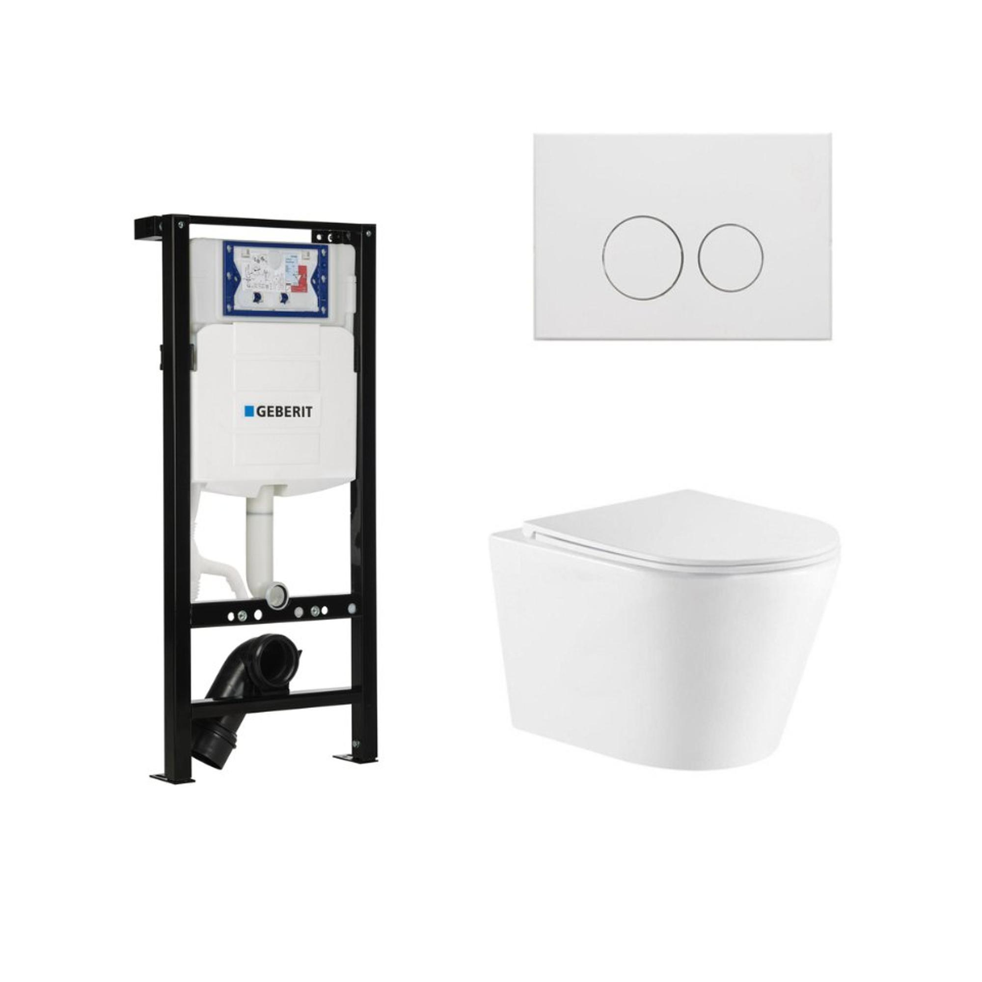 QeramiQ Dely Pack WC - 36,3x51,7cm - à fond creux - sans bride - réservoir encastré Geberit UP320 - abattant WC à fermeture douce - plan de déclenchement blanc mat - boutons ronds - blanc brillant