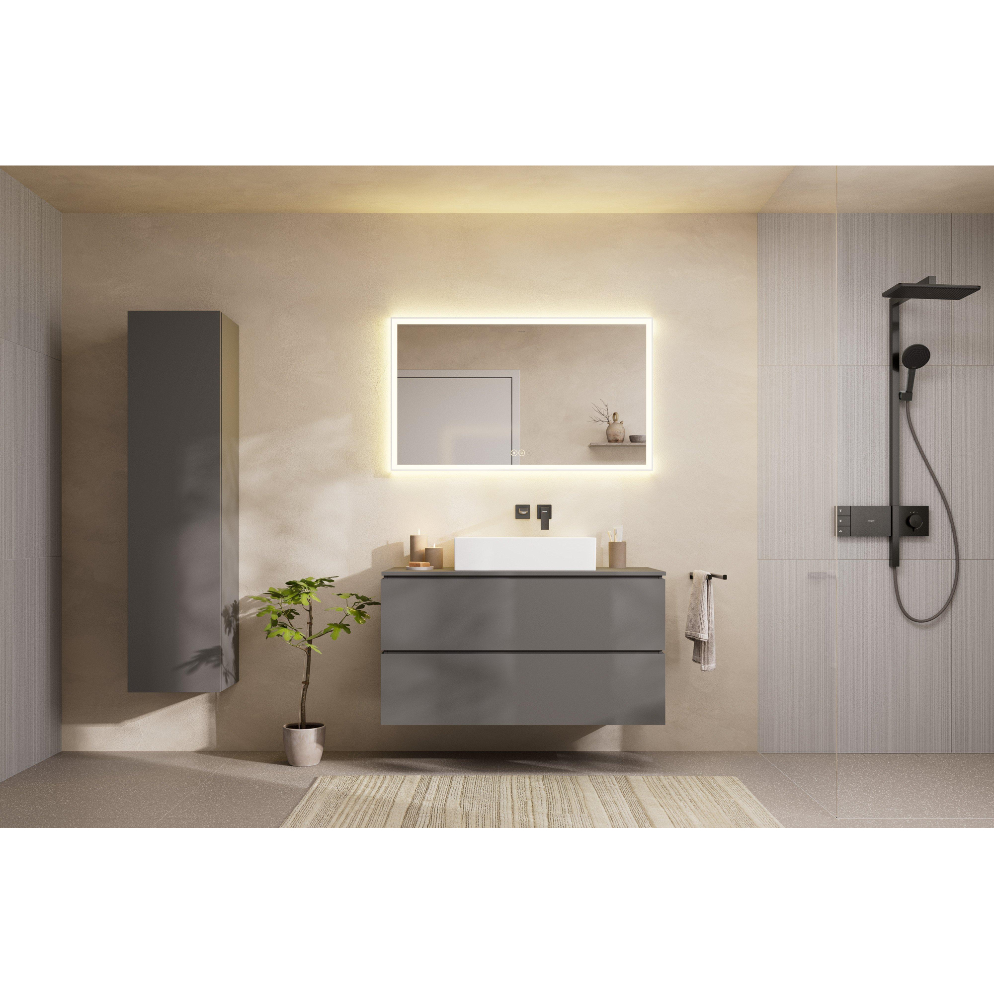 Avec sa couleur gris mat et ses façades rectangulaires planes, cette armoire de salle de bains Hansgrohe Xilesa apporte une touche moderne et haut de gamme à votre intérieur. La teinte gris ardoise mat se marie à merveille avec un style béton industriel, des vasques blanches épurées ou un meuble de salle de bains foncé, et se combine facilement avec d’autres meubles et carrelages. La conception sans poignée renforce le look minimaliste, sans rupture dans les lignes de cette colonne haute. Sa largeur de seulement 40 cm lui confère une allure fine et élégante, tandis que la hauteur de 165 cm crée un accent vertical harmonieux à côté du lavabo ou de la douche.