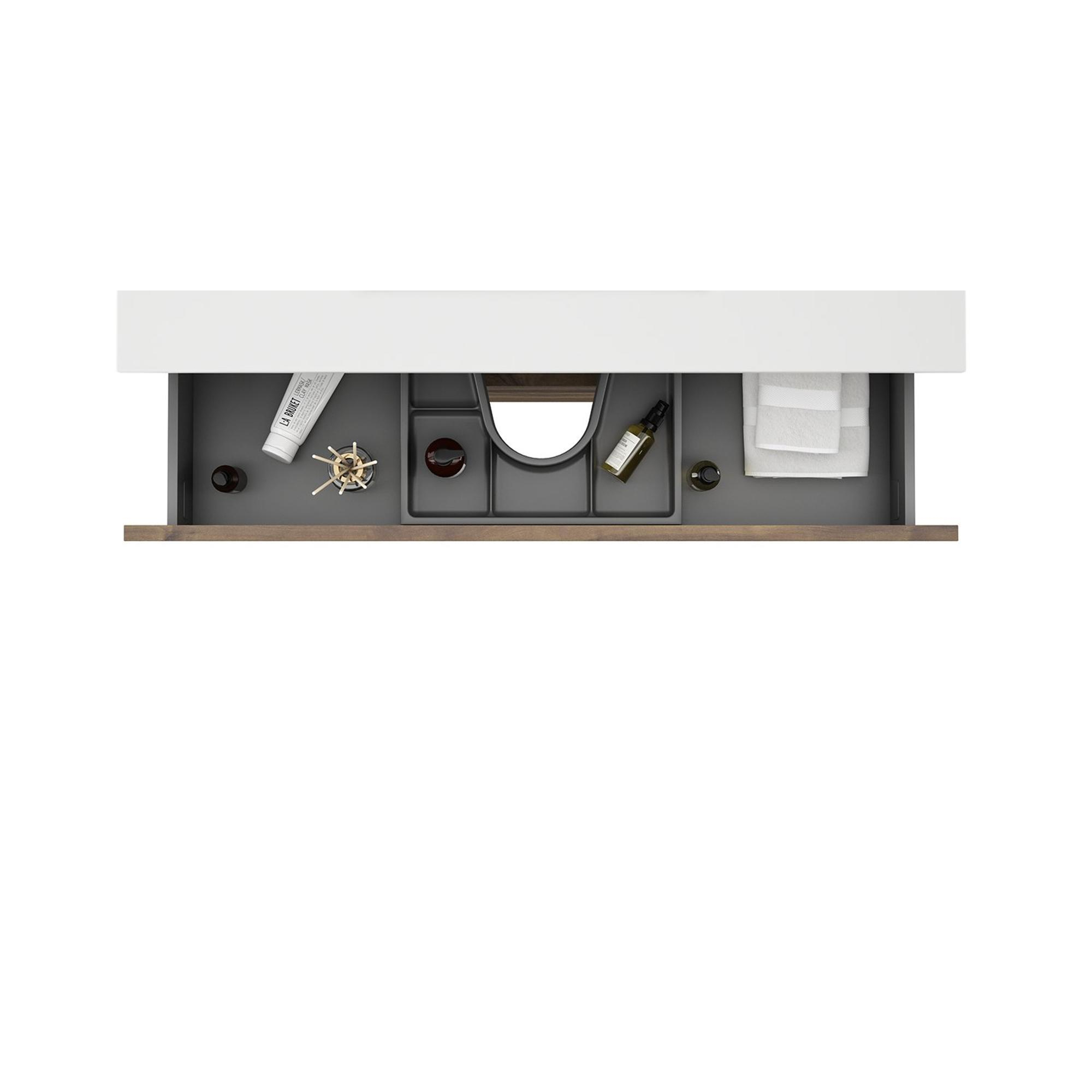 Dans votre salle de bain, vous souhaitez que tout soit beau et bien organisé. Ce magnifique meuble sous lavabo Saniclass Vita est une combinaison parfaite de style et de fonctionnalité. Avec son élégance et son espace de rangement pratique, ce meuble sera un ajout précieux à votre salle de bain. Le design intemporel et la finition en bois de noyer offrent une apparence luxueuse, tandis que les tiroirs sans poignées assurent un look épuré et moderne. Que vous ayez une petite ou une grande salle de bain, ce meuble s'adapte parfaitement et vous aidera à ranger vos affaires personnelles de manière ordonnée.