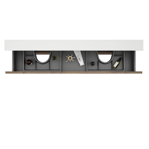 En plus de son apparence élégante, le meuble sous lavabo Saniclass Vita est également très fonctionnel. Avec une largeur de 120cm, il y a suffisamment d'espace pour garder tous vos essentiels à portée de main. Les 2 tiroirs sont équipés d'un mécanisme de fermeture douce, ce qui permet une fermeture silencieuse et empêche les tiroirs de claquer. Ce meuble n'est pas seulement un régal pour les yeux, mais rend également votre routine quotidienne dans la salle de bain beaucoup plus facile.