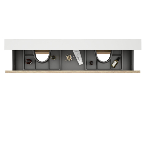 FonctionnelEn plus de sa valeur esthétique, ce meuble sous lavabo est également très fonctionnel. Les 2 tiroirs sont équipés d'un mécanisme de fermeture douce, ce qui leur permet de se fermer en douceur et silencieusement. Cela assure non seulement un confort supplémentaire, mais prolonge également la durée de vie des tiroirs. De plus, le meuble mesure 120cm de large, offrant ainsi suffisamment d'espace sans prendre trop de place dans votre salle de bain.