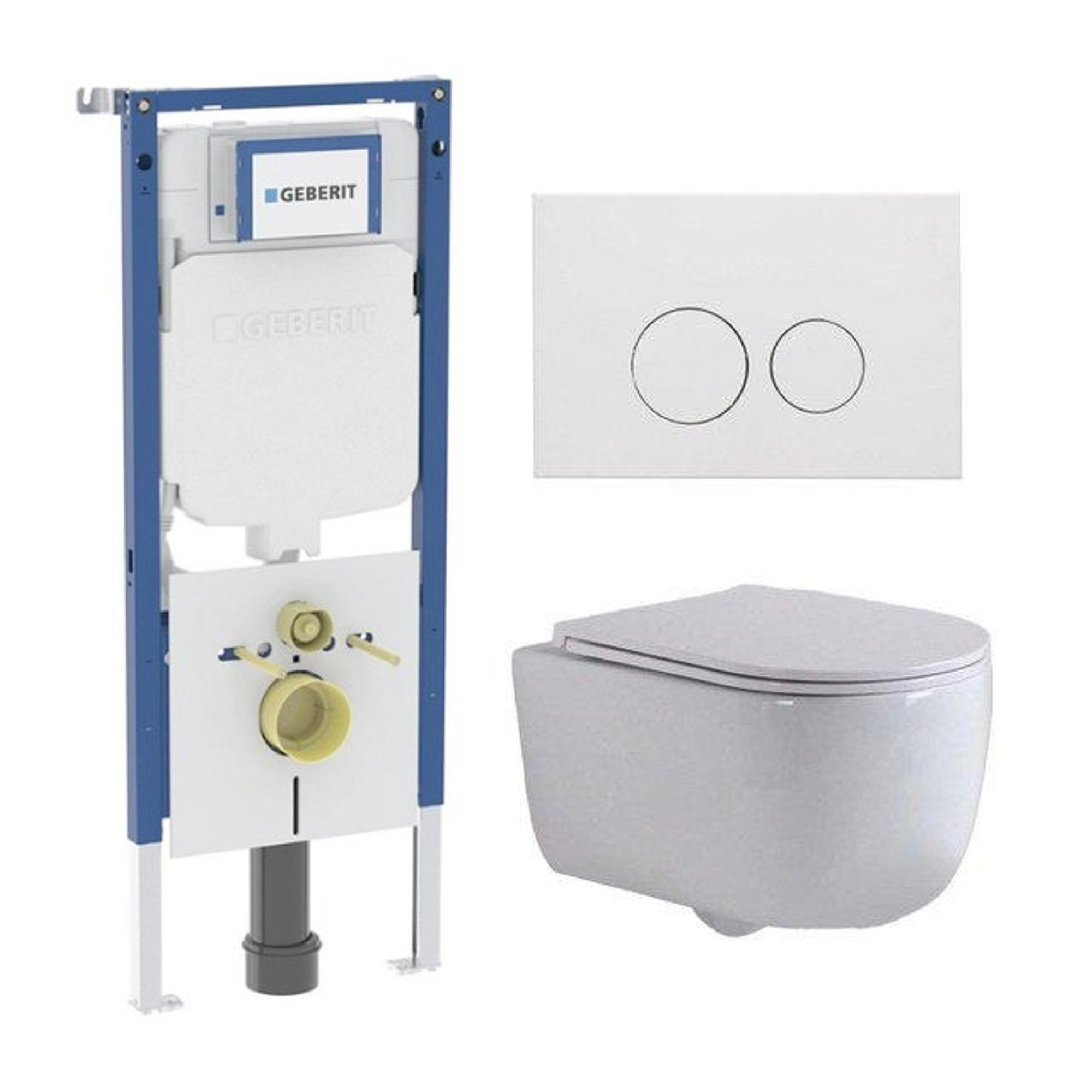 QeramiQ Dely Swirl Pack WC - 36.3x51.7cm - à fond creux - sans bride - réservoir encastré Geberit UP720 - abattant intelligent - plaque de déclenchement en métal blanc mat - boutons ronds - blanc mat