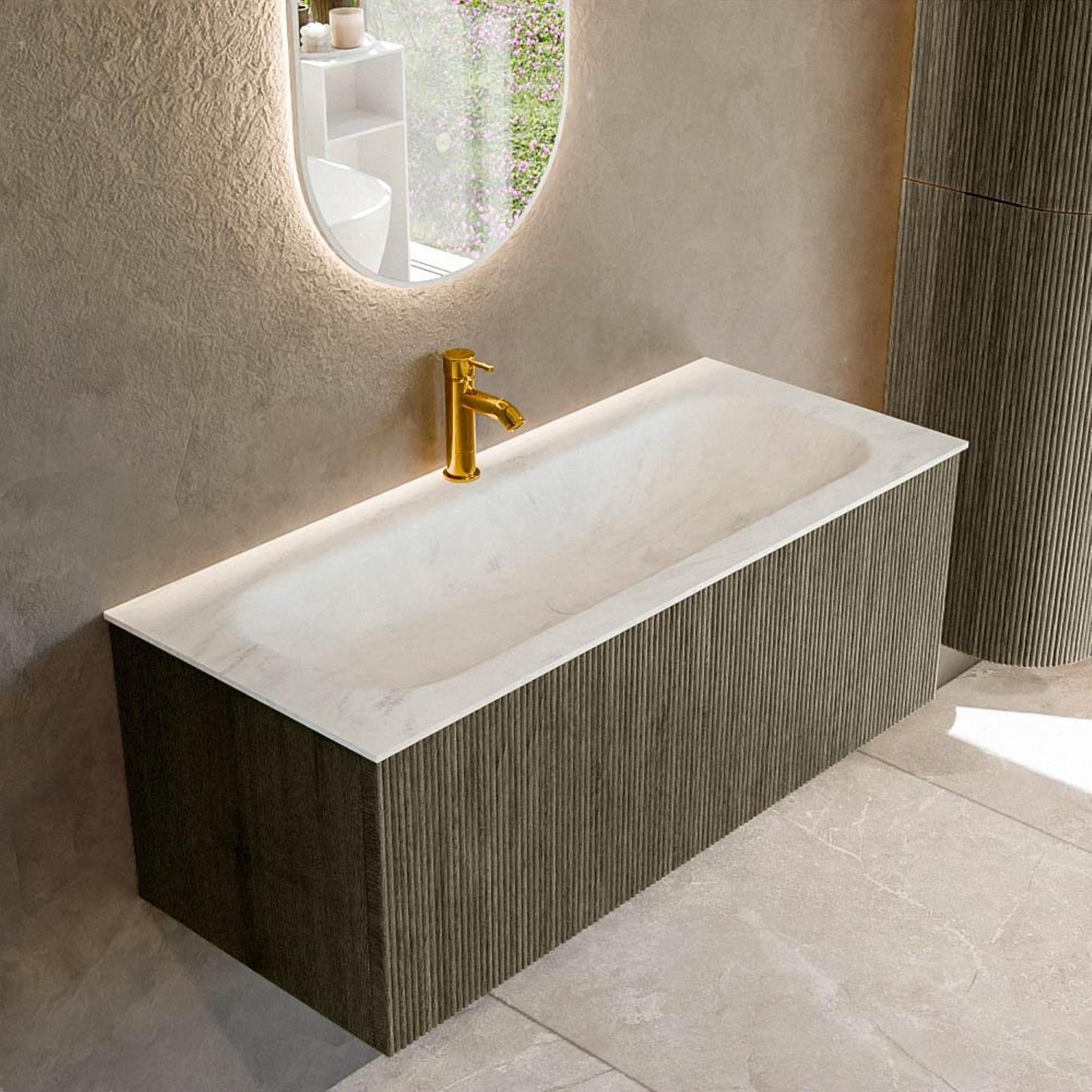 Mondiaz KURVE-DLUX Ensemble de meuble - 110x46x40cm - 1 tiroir - lavabo en solid surface - milieu - 1 trou de robinet - Shadow