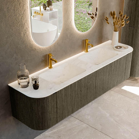 Mondiaz KURVE-DLUX Ensemble de meuble salle de bain - 180x46x40cm - 2 tiroirs - 2 portes - lavabo en solid surface - double - 2 trous de robinet - Shadow