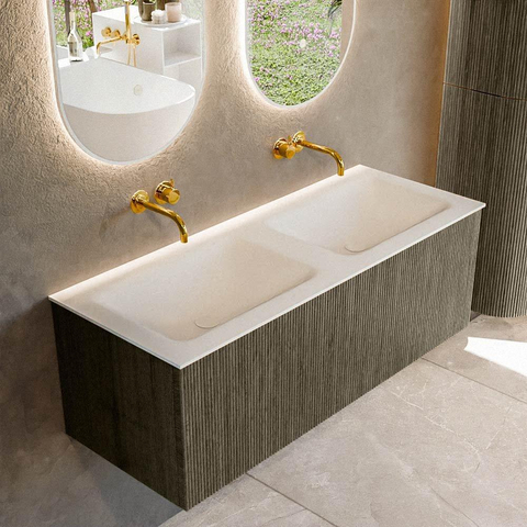 Ensemble de meuble de salle de bain Mondiaz KURVE - 120x46x40cm - 1 tiroir - lavabo en solid surface - double - sans trou de robinet - Shadow