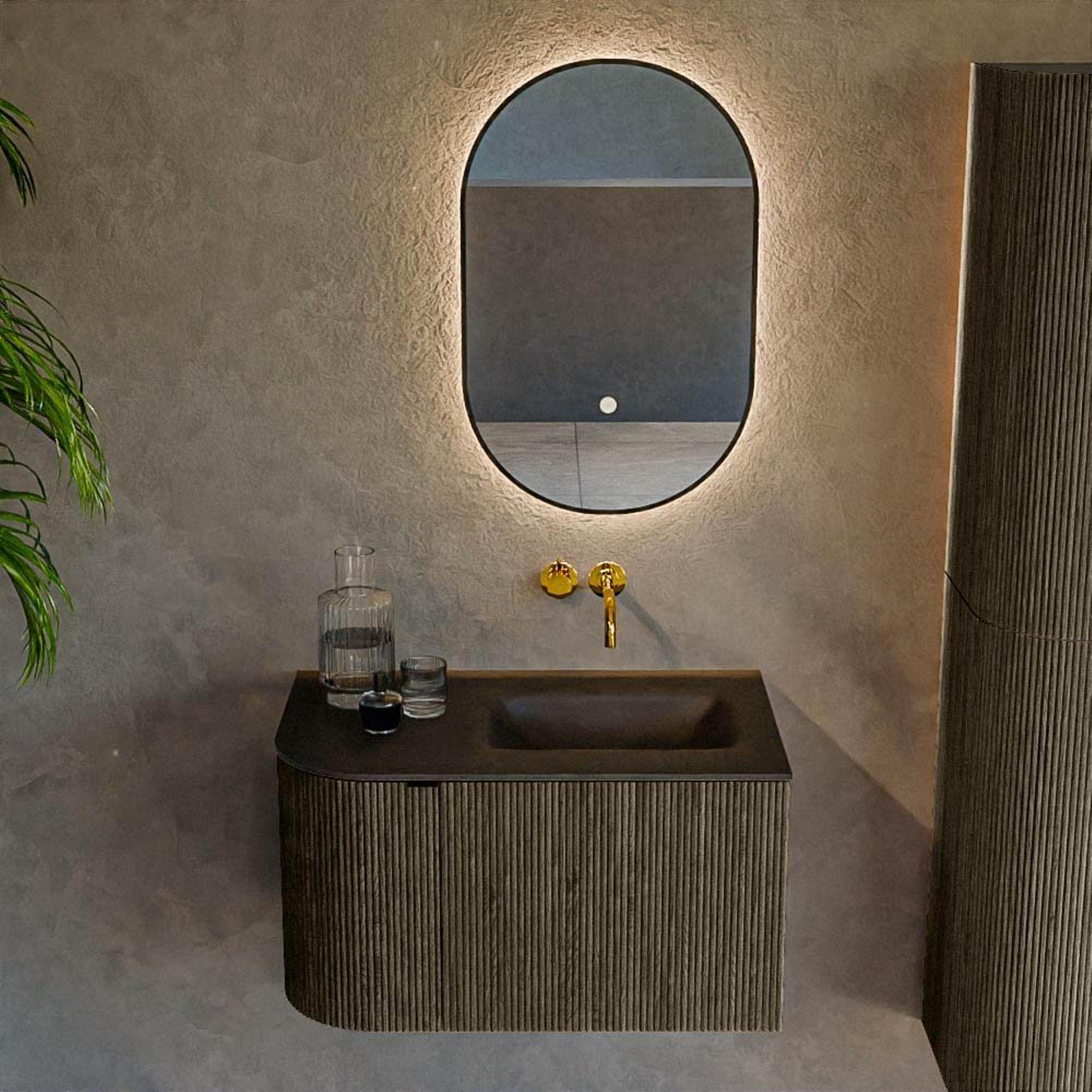 Mondiaz KURVE Ensemble de meuble salle de bain - 75x46x40cm - 1 tiroir - 1 porte - lavabo en solid surface - droite - sans trou de robinet - Shadow