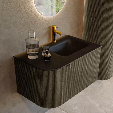 Mondiaz KURVE Ensemble de meuble salle de bain - 75x46x40cm - 1 tiroir - 1 porte - lavabo en solid surface - droite - 1 trou de robinet - Shadow
