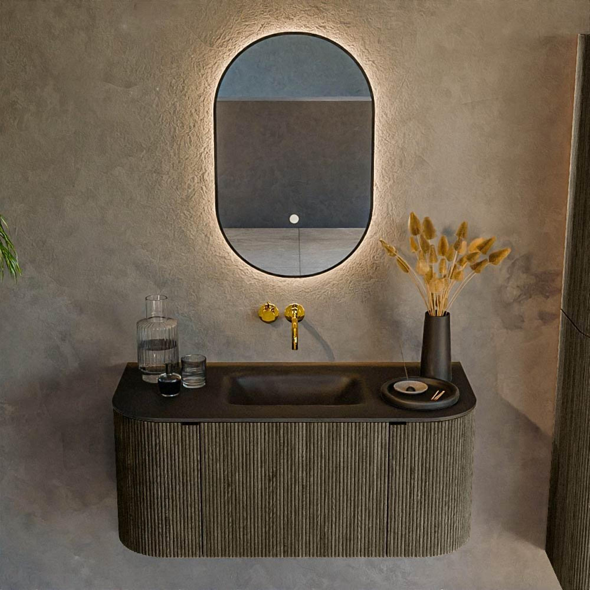 Mondiaz KURVE Ensemble de meuble salle de bain - 100x46x40cm - 1 tiroir - 2 portes - lavabo en solid surface - milieu - sans trou de robinet - Shadow