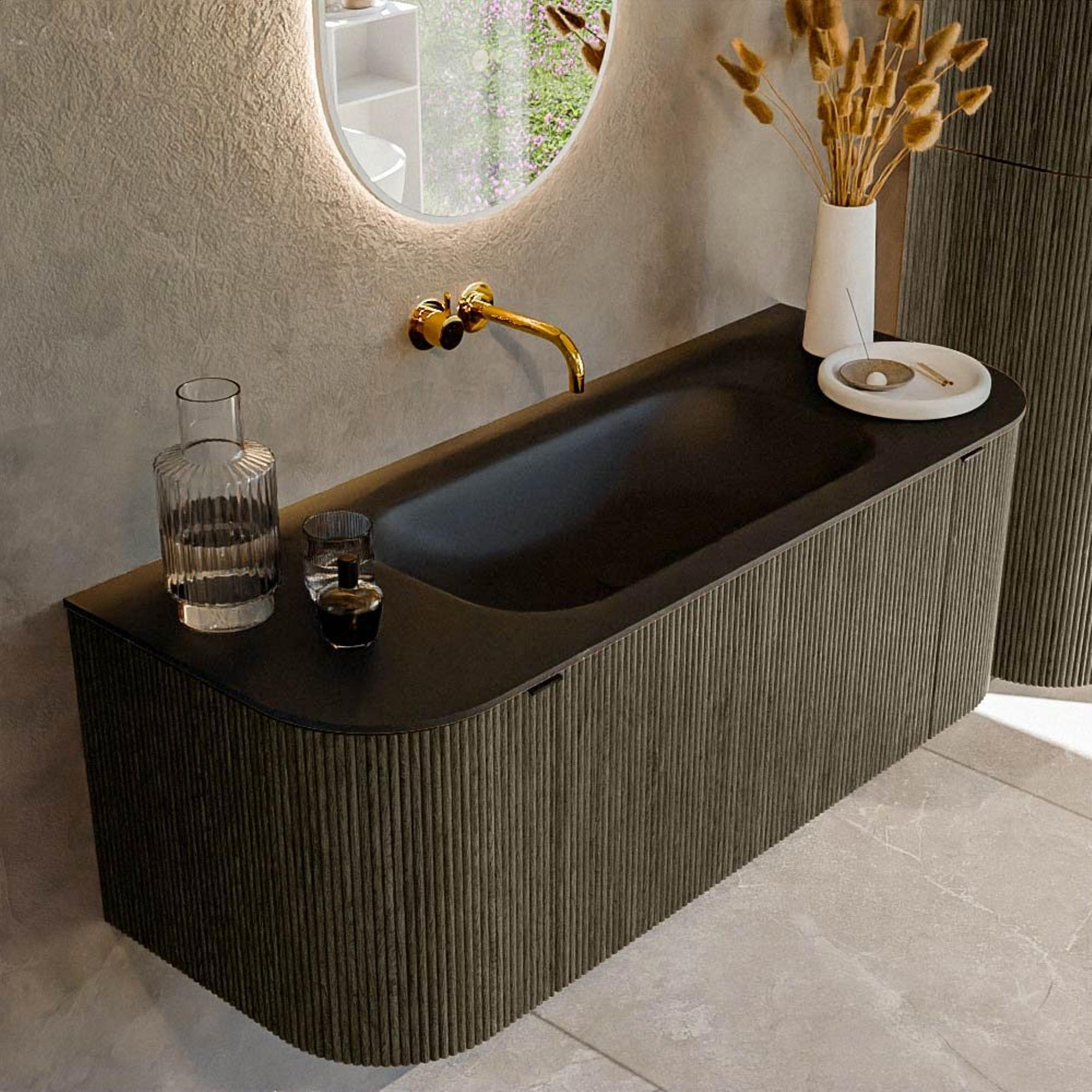 Mondiaz KURVE Ensemble de meuble salle de bain - 120x46x40cm - 1 tiroir - 2 portes - lavabo en solid surface - milieu - sans trou de robinet - Shadow