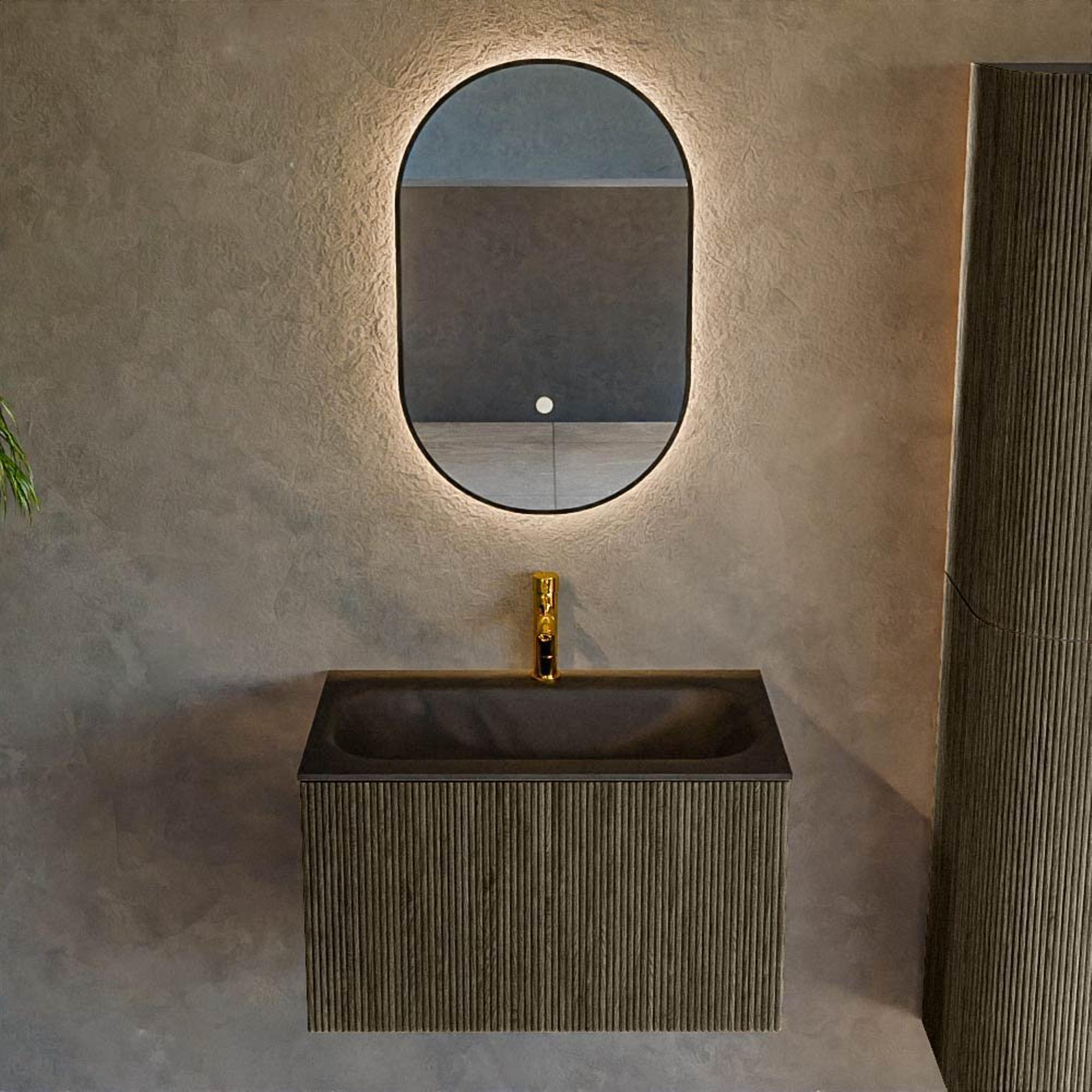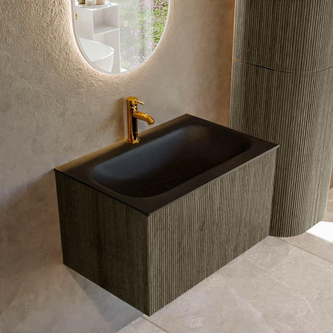 Mondiaz KURVE Ensemble de meuble salle de bain - 70x46x40cm - 1 tiroir - lavabo en solid surface - milieu - 1 trou de robinet - Shadow