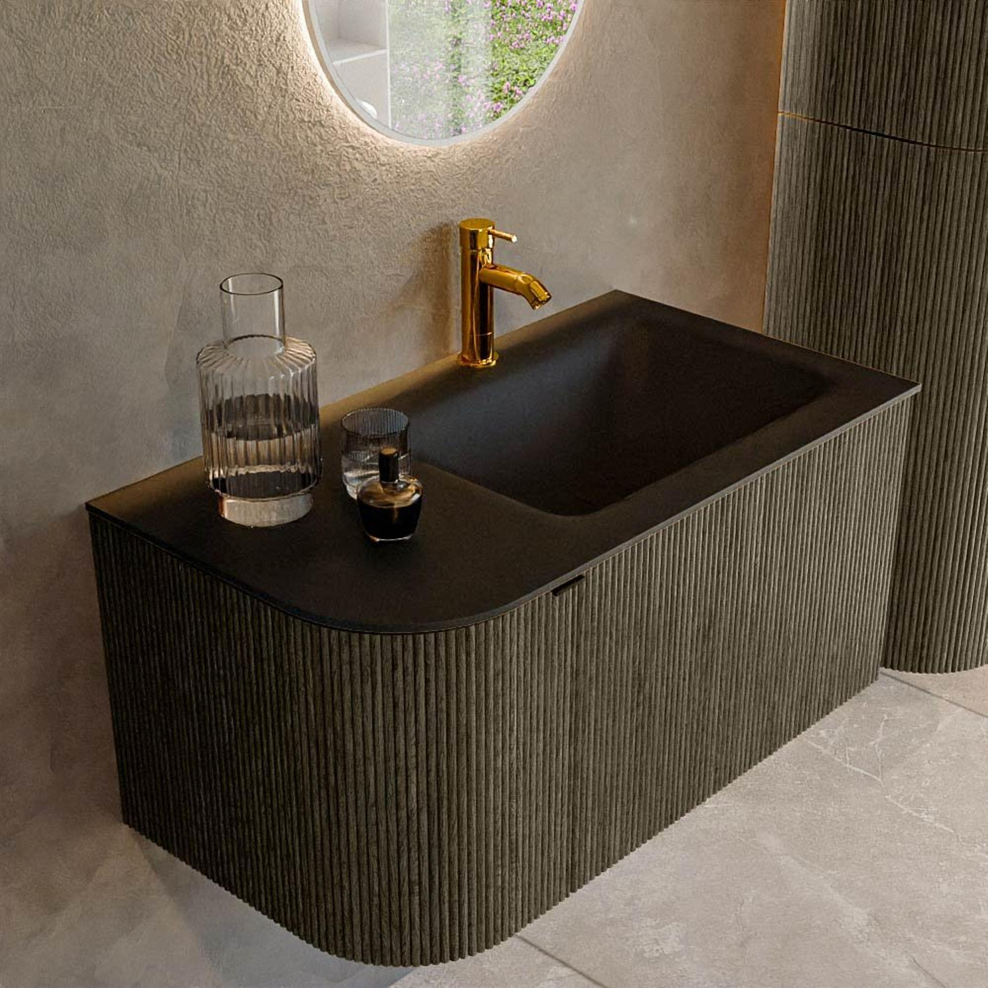 Mondiaz KURVE Ensemble de meuble salle de bain - 85x46x40cm - 1 tiroir - 1 porte - lavabo en solid surface - droite - 1 trou de robinet - Shadow