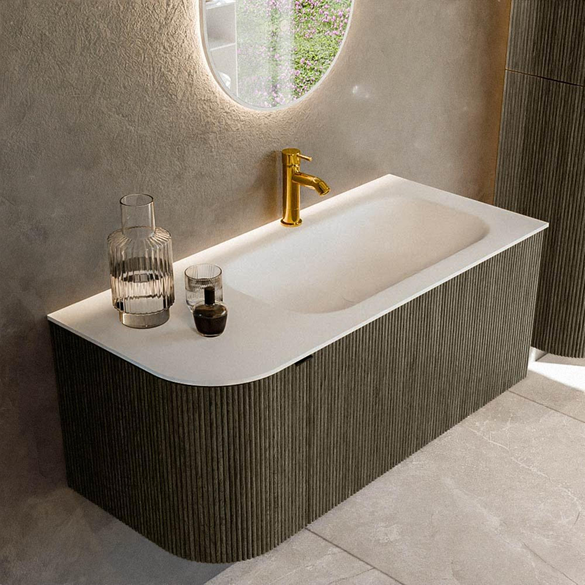Mondiaz KURVE Ensemble de meuble salle de bain - 105x46x40cm - 1 tiroir - 1 porte - lavabo en solid surface - droite - 1 trou de robinet - Shadow