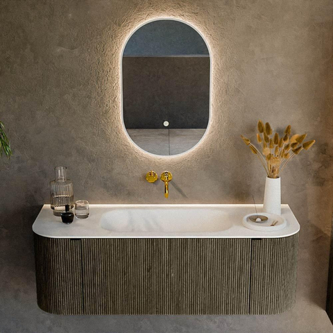 Mondiaz KURVE Ensemble de meuble salle de bain - 130x46x40cm - 1 tiroir - 2 portes - lavabo en solid surface - milieu - sans trou de robinet - Shadow