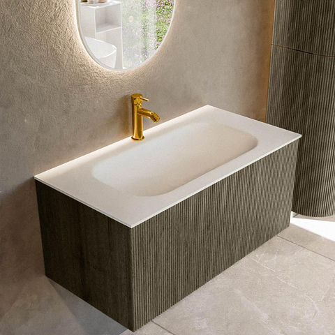 Mondiaz KURVE Ensemble de meuble de salle de bain - 90x46x40cm - 1 tiroir - lavabo en solid surface - milieu - 1 trou de robinet - Shadow