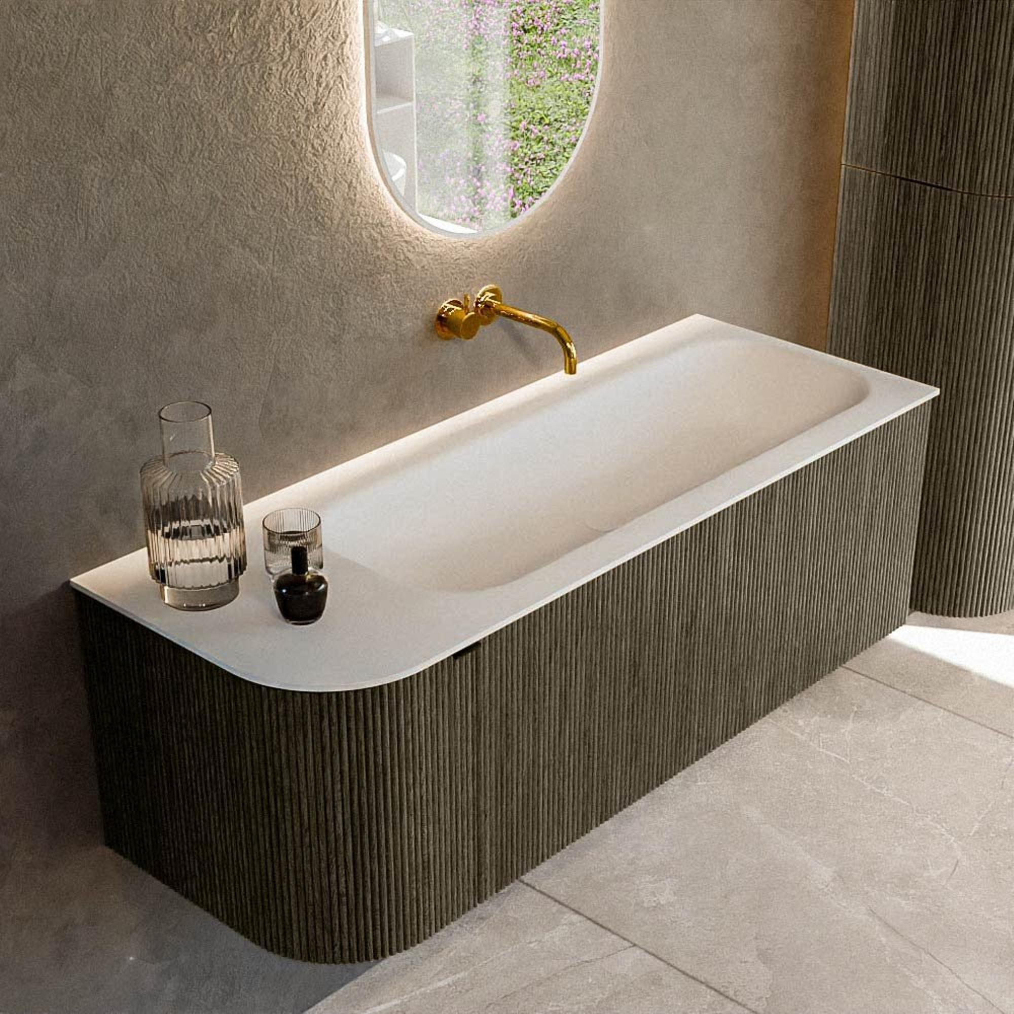 Mondiaz KURVE Ensemble de meuble salle de bain - 125x46x40cm - 1 tiroir - 1 porte - lavabo en solid surface - droite - sans trou de robinet - Shadow