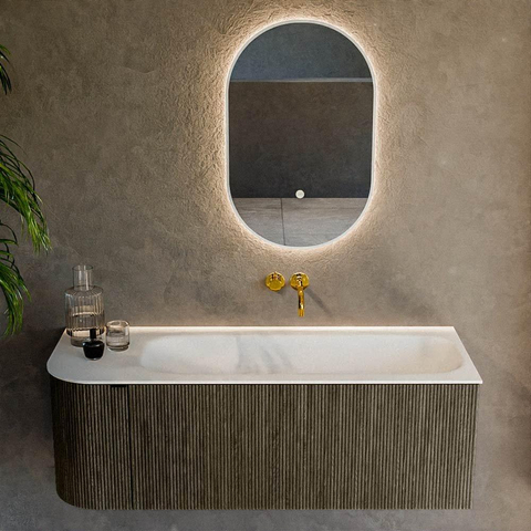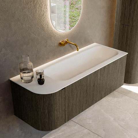 PratiqueEn plus d'avoir un aspect élégant, le meuble de salle de bain est également très pratique à utiliser. Avec ses dimensions généreuses de 125x46x40 cm, ce meuble offre suffisamment d'espace de rangement pour tous vos accessoires de salle de bain. Le tiroir et la porte sont équipés de charnières et de glissières de haute qualité, garantissant un fonctionnement fluide et silencieux. Ainsi, le meuble est non seulement un régal pour les yeux, mais aussi un plaisir à utiliser au quotidien. Le lavabo en matériau solid surface est durable, facile à entretenir et offre une solution hygiénique pour votre salle de bain. Le design avant-gardiste sans trou de robinet vous permet également d'installer un robinet sur pied, ce qui offre non seulement plus de liberté de mouvement, mais contribue également à une apparence organisée et soignée de votre salle de bain.