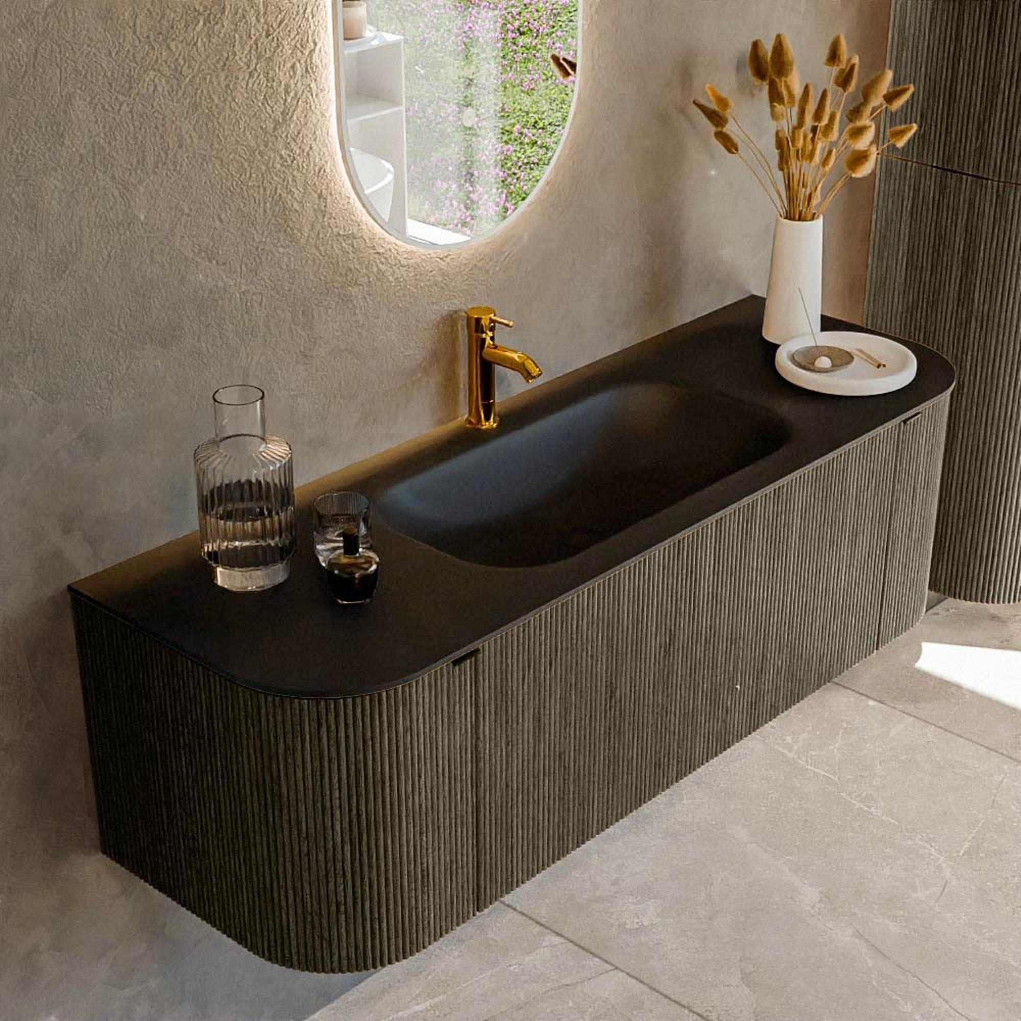 Mondiaz KURVE Ensemble de meuble salle de bain - 140x46x40cm - 1 tiroir - 2 portes - lavabo en solid surface - milieu - 1 trou de robinet - Shadow