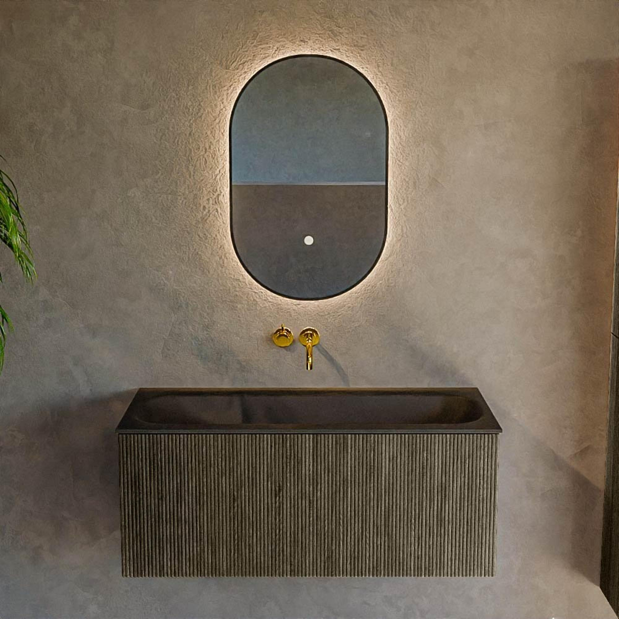 Ensemble de meuble de salle de bain Mondiaz KURVE - 100x46x40cm - 1 tiroir - lavabo en solid surface - milieu - sans trou de robinet - Shadow