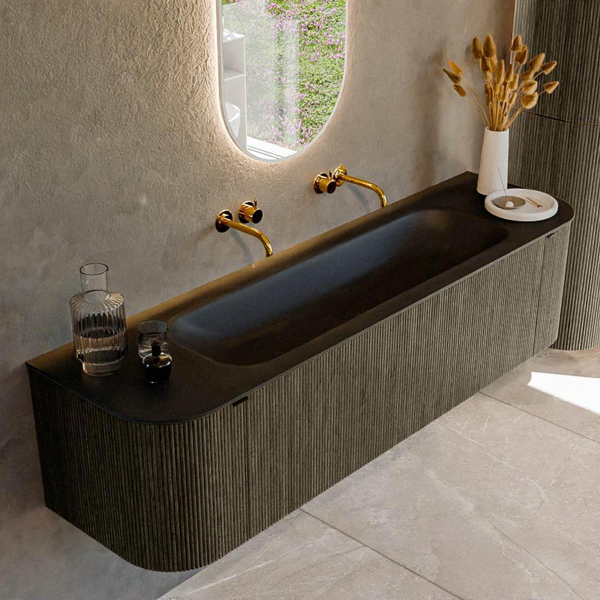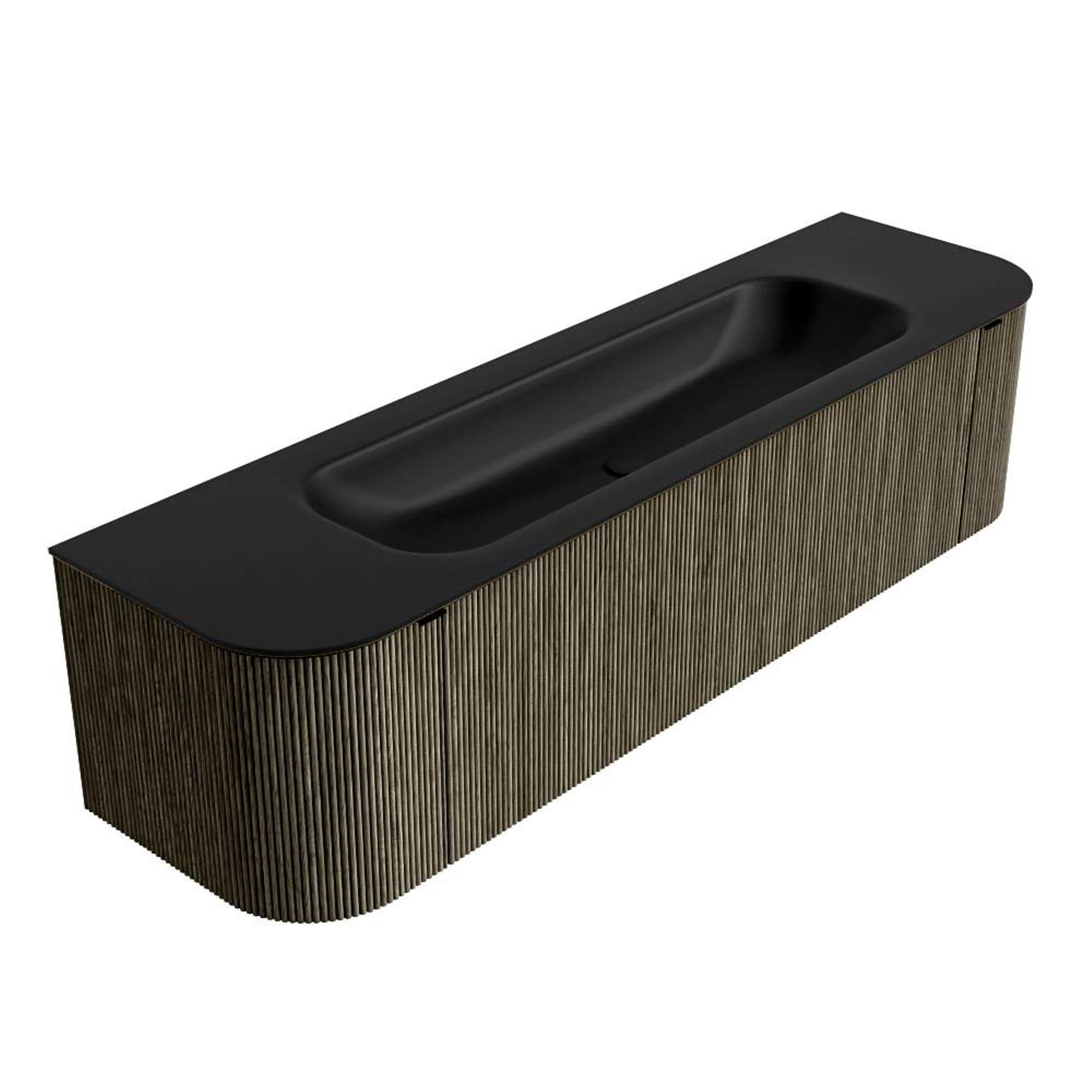 Mondiaz KURVE Ensemble de meuble salle de bain - 170x46x40cm - 1 tiroir - 2 portes - lavabo en solid surface - milieu - sans trou de robinet - Shadow