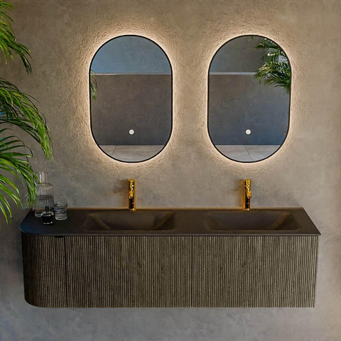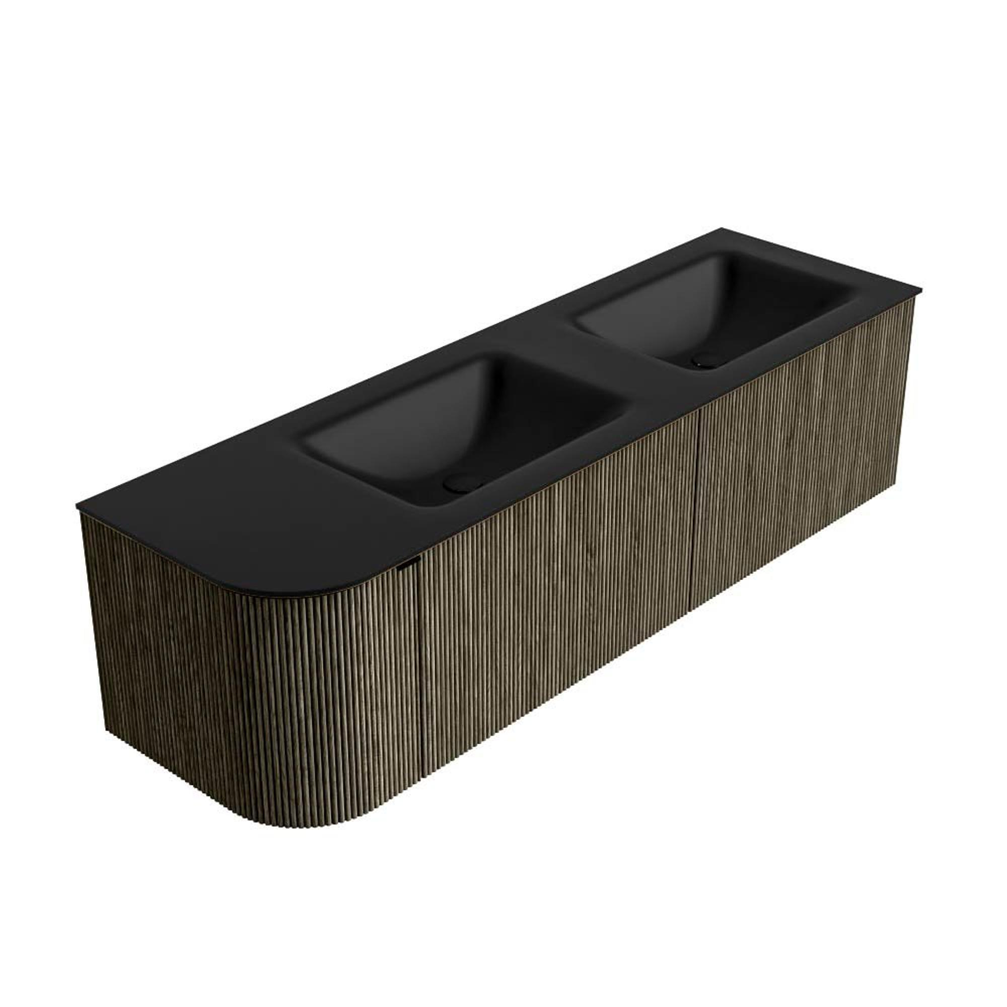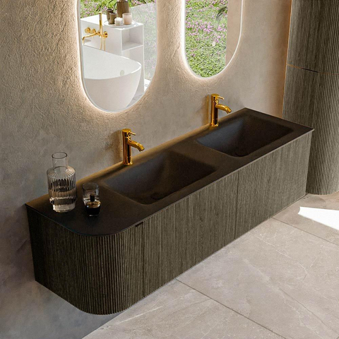 Mondiaz KURVE Ensemble de meuble salle de bain - 155x46x40cm - 2 tiroirs - 1 porte - lavabo en solid surface - double / droite - 2 trous de robinet - Shadow