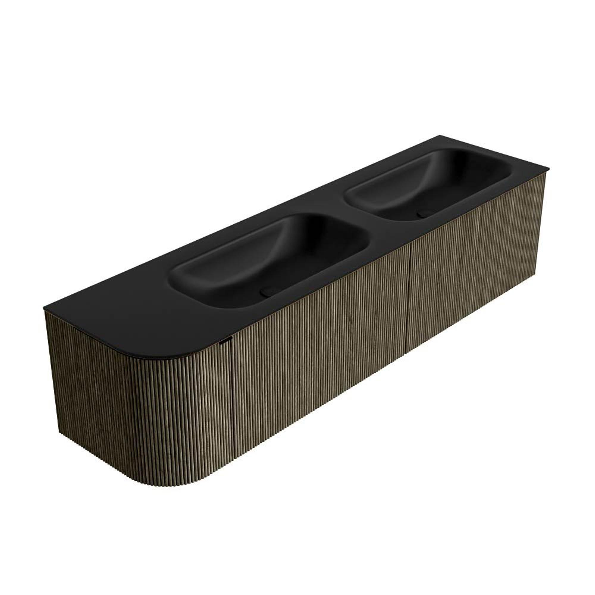 Mondiaz KURVE Ensemble de meuble salle de bain - 175x46x40cm - 2 tiroirs - 1 porte - lavabo en solid surface - double / droite - 2 trous de robinet - Shadow