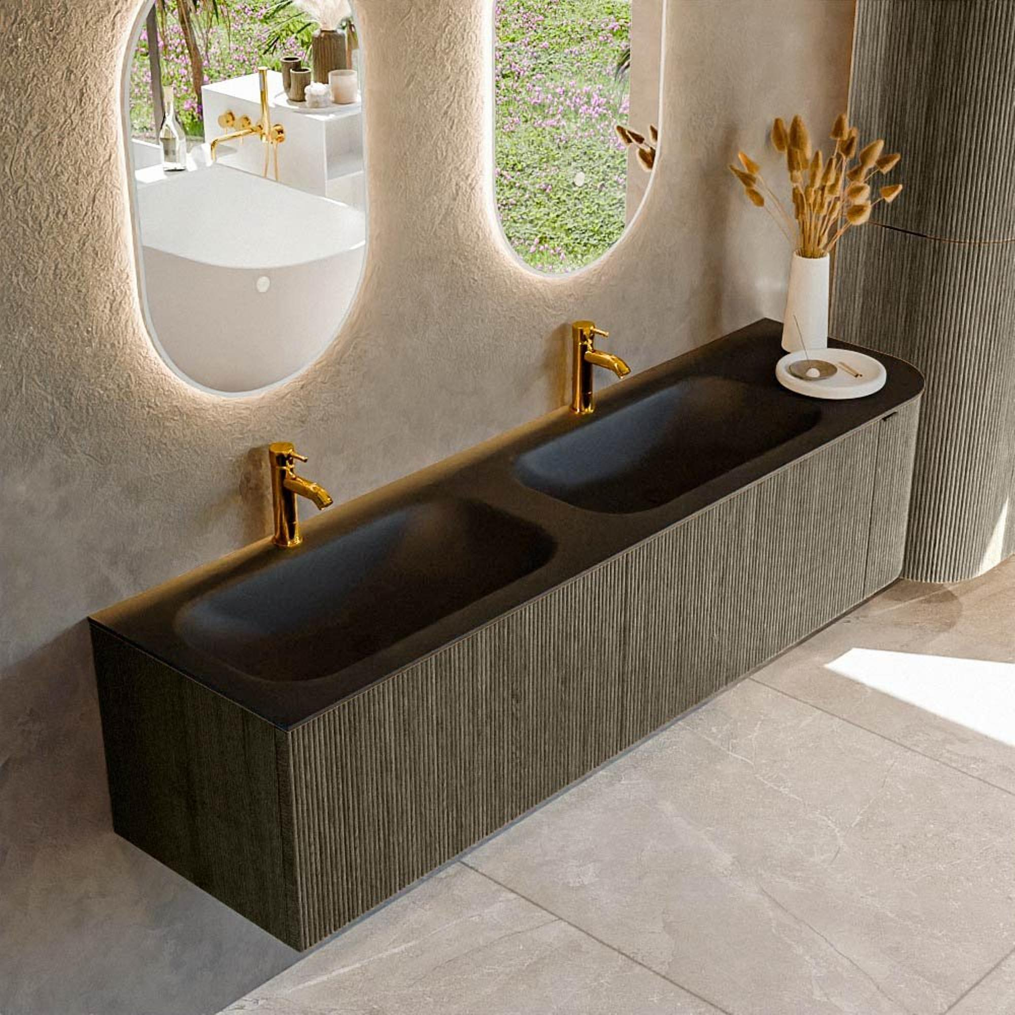 Ensemble de meuble de salle de bain Mondiaz KURVE - 175x46x40cm - 2 tiroirs - 1 porte - lavabo en solid surface - double / gauche - 2 trous de robinet - Shadow