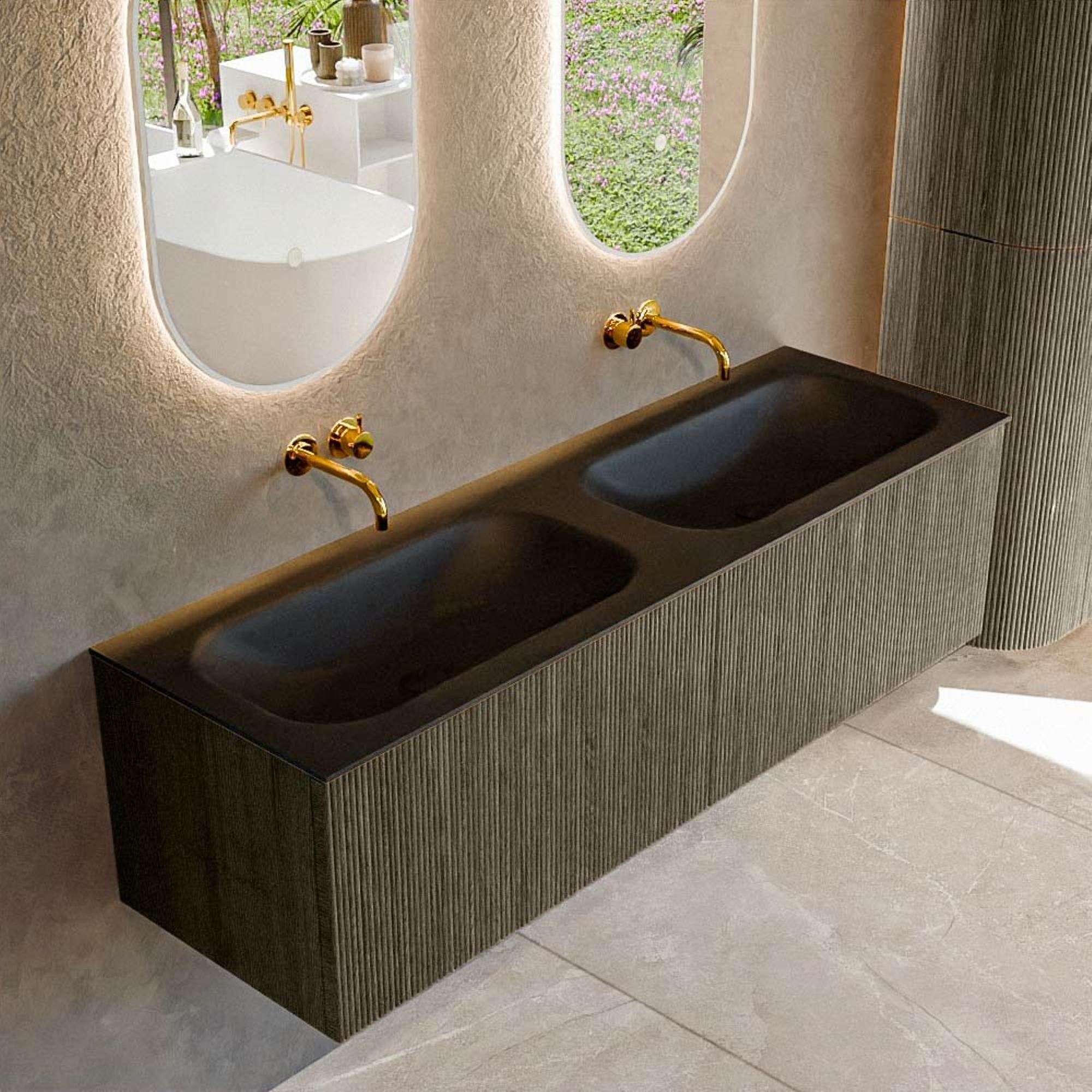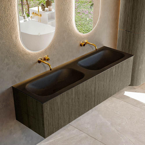Mondiaz KURVE Ensemble de meuble salle de bain - 150x46x40cm - 2 tiroirs - lavabo en solid surface - double - sans trou de robinet - Shadow
