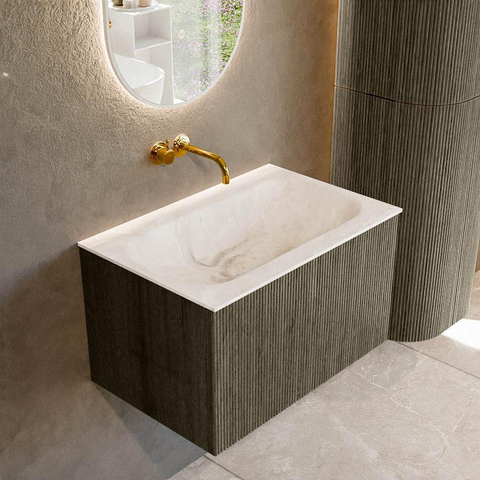 Mondiaz KURVE-DLUX Ensemble de meuble salle de bain - 70x46x40cm - 1 tiroir - lavabo en solid surface - milieu - sans trou de robinet - Shadow