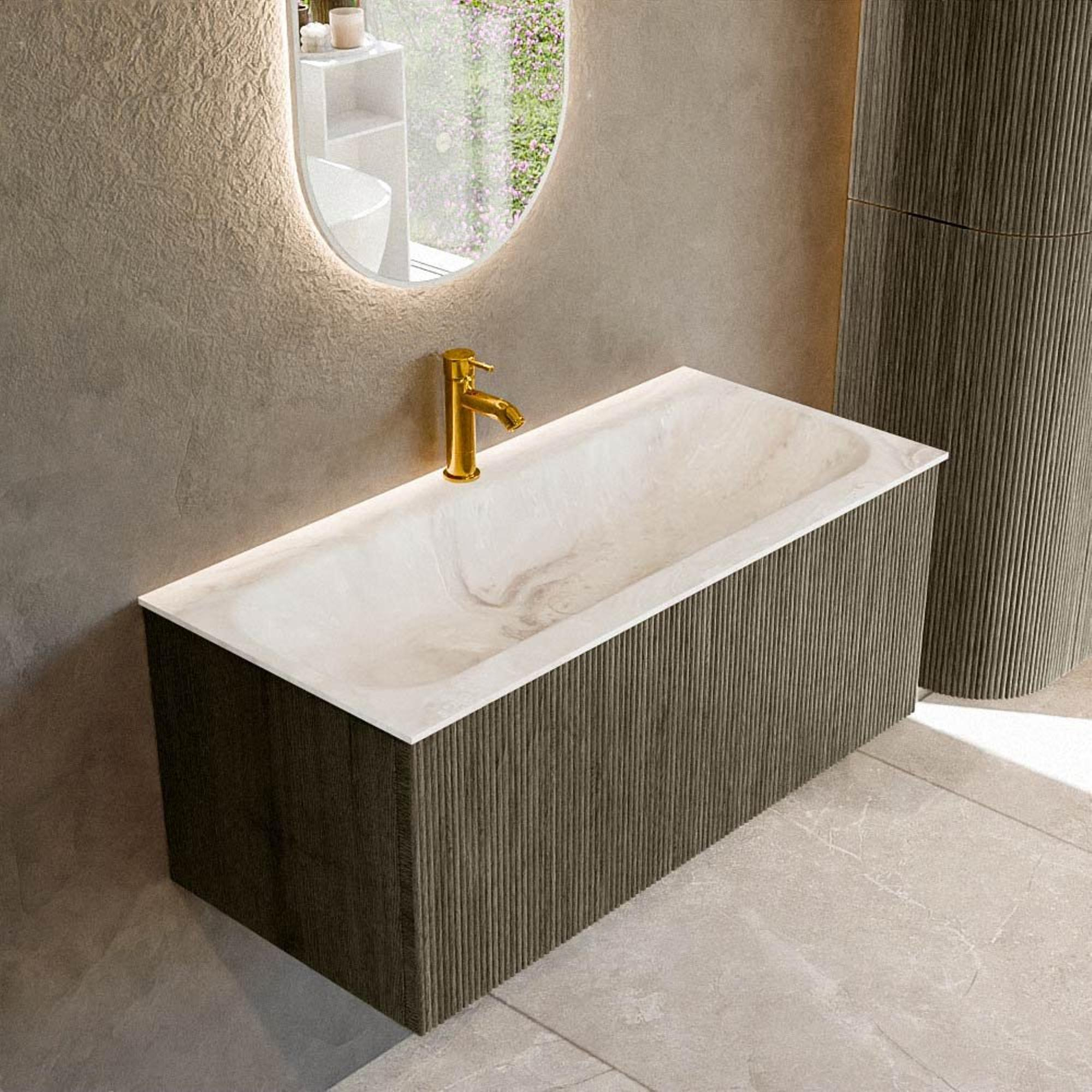 Mondiaz KURVE-DLUX Ensemble de meuble salle de bain - 100x46x40cm - 1 tiroir - lavabo en solid surface - milieu - 1 trou de robinet - Shadow